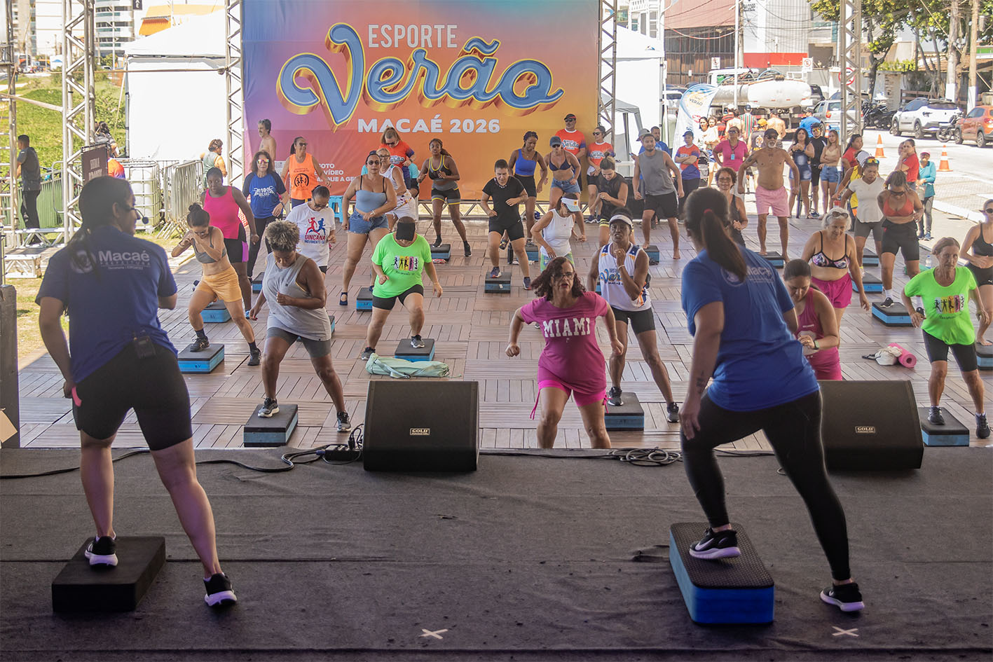 A programação na Arena Esporte Verão, na manhã deste domingo (1º de fevereiro), movimentou a Praia Campista desde as primeiras horas com o Passeio Ciclístico, seguido de Futebol Infantil, Futevôlei, Yoga, Kickboxing e Step. O evento é organizado pelo Sesc e Prefeitura de Macaé. As atividades serão realizadas até o dia 8 de fevereiro.