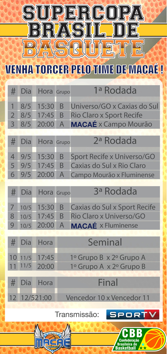 - Acredito que teremos muitas partidas equilibradas, não vai ser fácil para ninguém. Temos equipes de qualidade que merecem muito respeito. No jogo de estreia a vitória será crucial. Temos um padrão definido de jogo, então a regra vai ser trabalhar em cima das características individuais de cada um e ter a motivação para ganhar. Jogar em casa, com o apoio da torcida, vai ser um ponto positivo – declarou o técnico do Macaé Basquete, Léo Costa.
