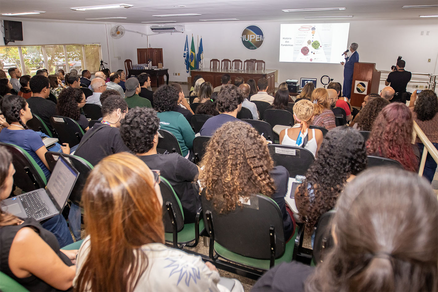 A aula inaugural do curso de Biomedicina aconteceu na tarde desta terça-feira (10), no Nupem/UFRJ-Macaé e contou com a presença do prefeito Welberth Rezende; do reitor da UFRJ, professor Roberto Medronho; do decano da UFRJ, Irnak Marcelo Barbosa; da diretora do Nupem/RJ-Macaé, Cíntia Monteiro de Barros e da Secretária Executiva de Ensino Superior, Iza Vicente.