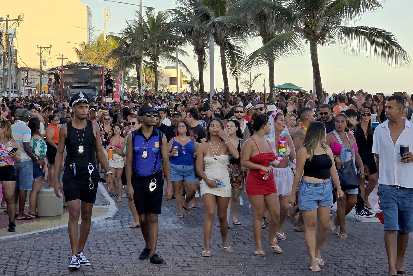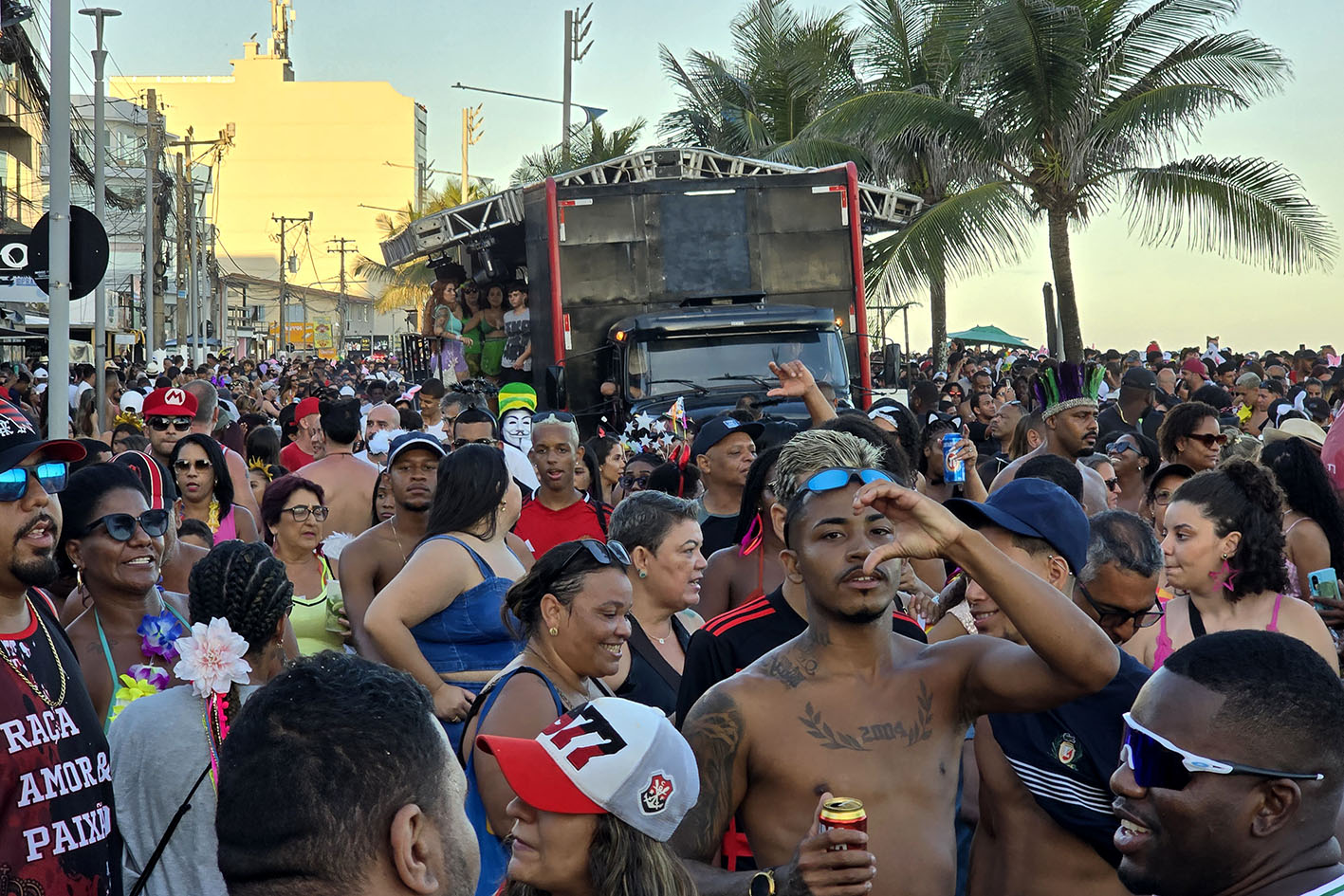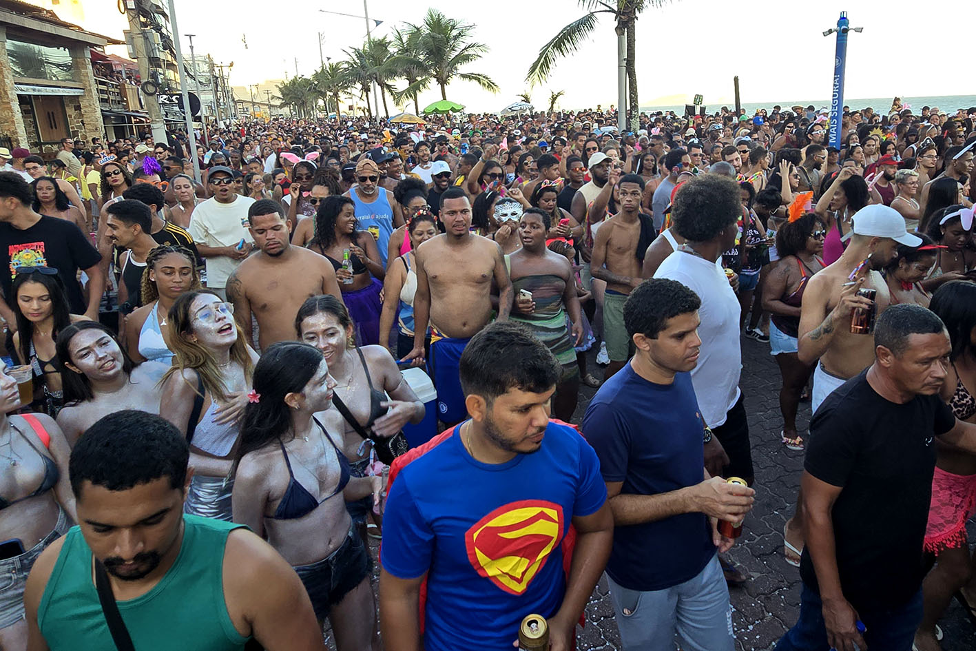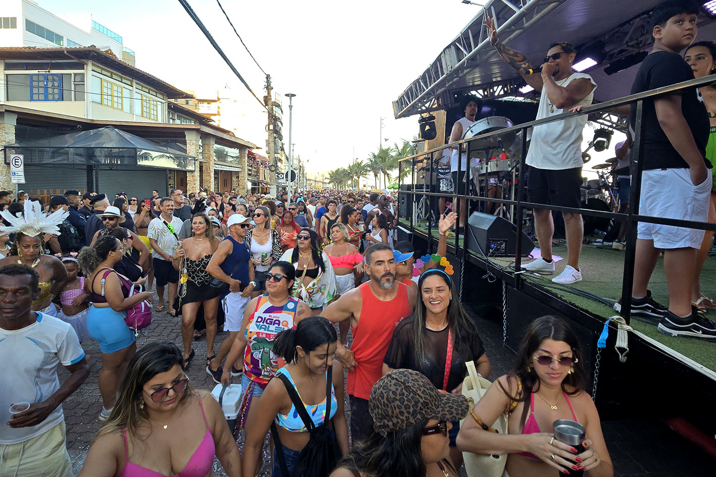 O ritmo contagiante chamou a atenção de todos os foliões que estavam nos bares e calçadão da Orla dos Cavaleiros, como a esteticista Maria Araújo, que chegou cedo na praia para não perder nenhuma atração do segundo dia de Carnaval.