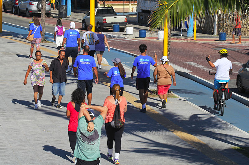 Cerca de cem pessoas participaram no último sábado (11) da primeira caminhada promovida pela Coordenadoria Municipal Especializada de Apoio ao Escolar (Cemeaes) na orla da Praia dos Cavaleiros, em uma linda manhã de sol. A caminhada faz parte de uma série de atividades extras promovidas pelo Cemeaes, que tem como principal objetivo integrar usuários, funcionários e suas famílias.