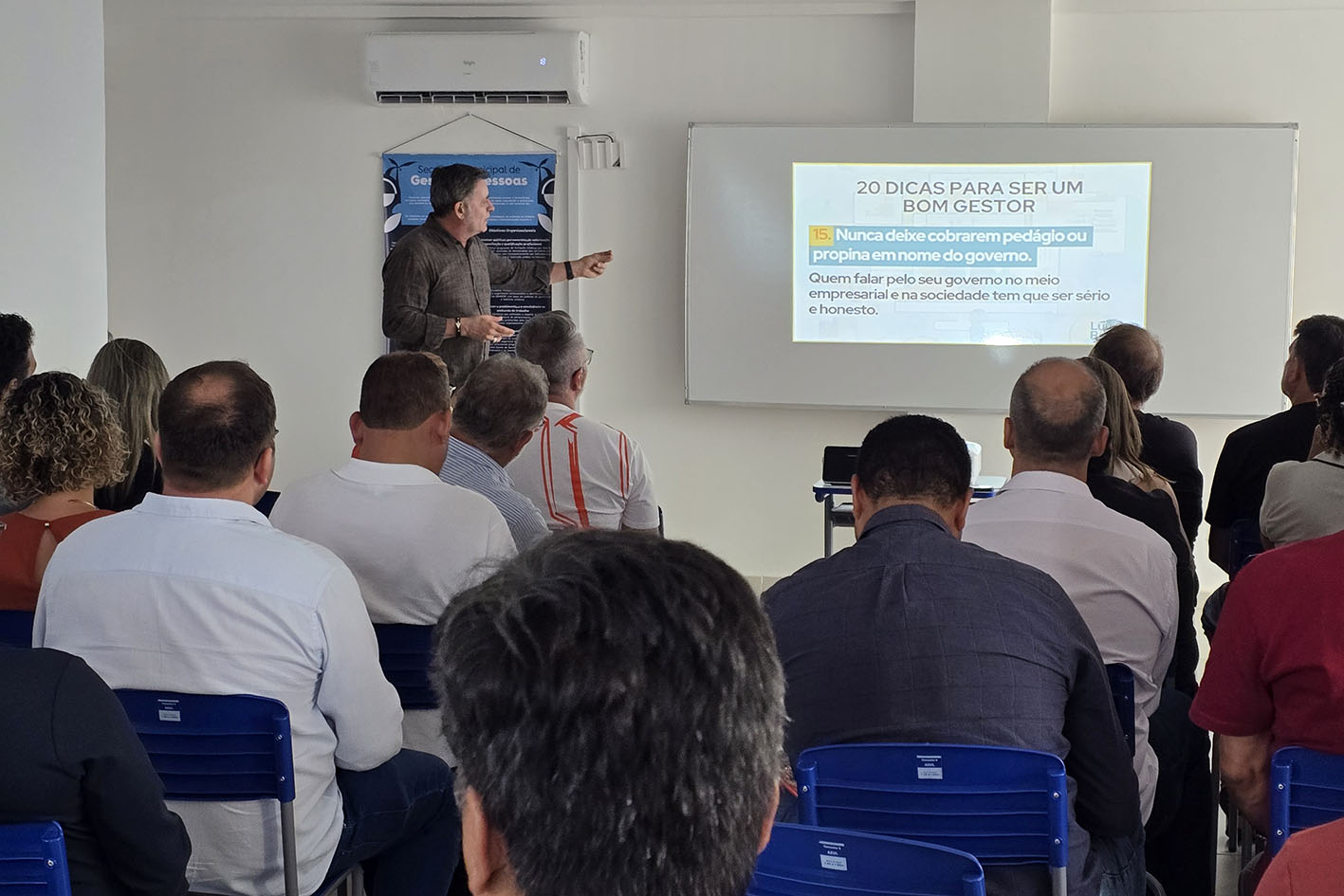 O palestrante destacou ainda que, após as capacitações, percebe transformações significativas nos servidores, ressaltando que o processo exige constância e comprometimento. Segundo ele, fazer um bom mandato pode ser tão ou mais desafiador do que vencer uma eleição.