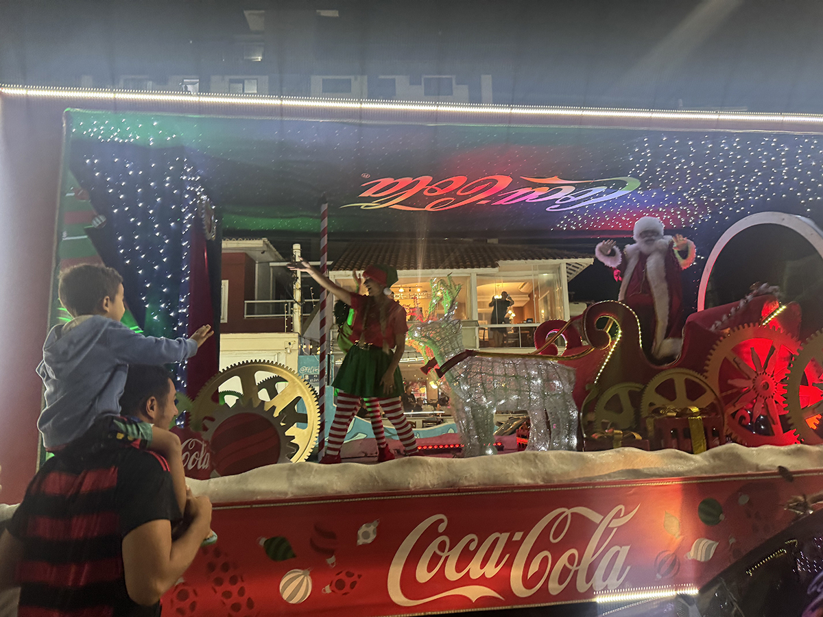 Caminhões iluminados da Caravana de Natal da Coca-Cola percorrem as ruas de Macaé e encantam o público durante a noite desta quarta-feira