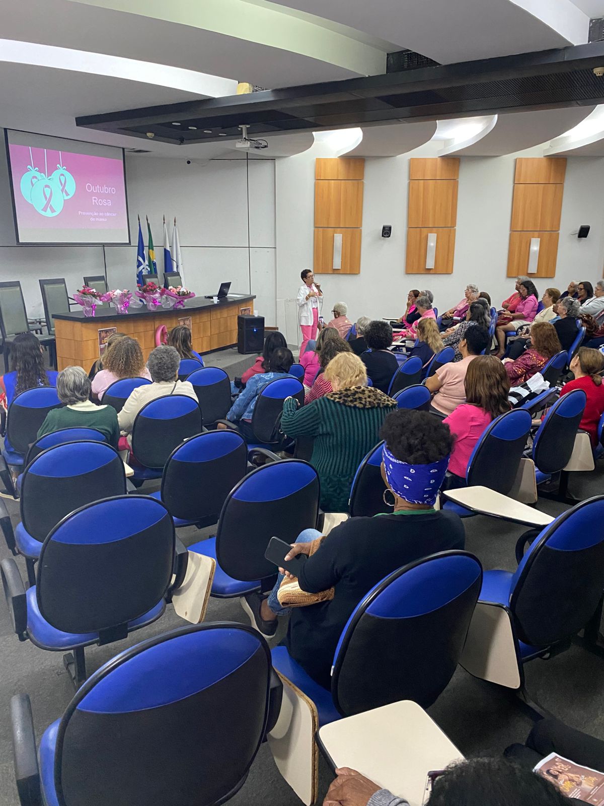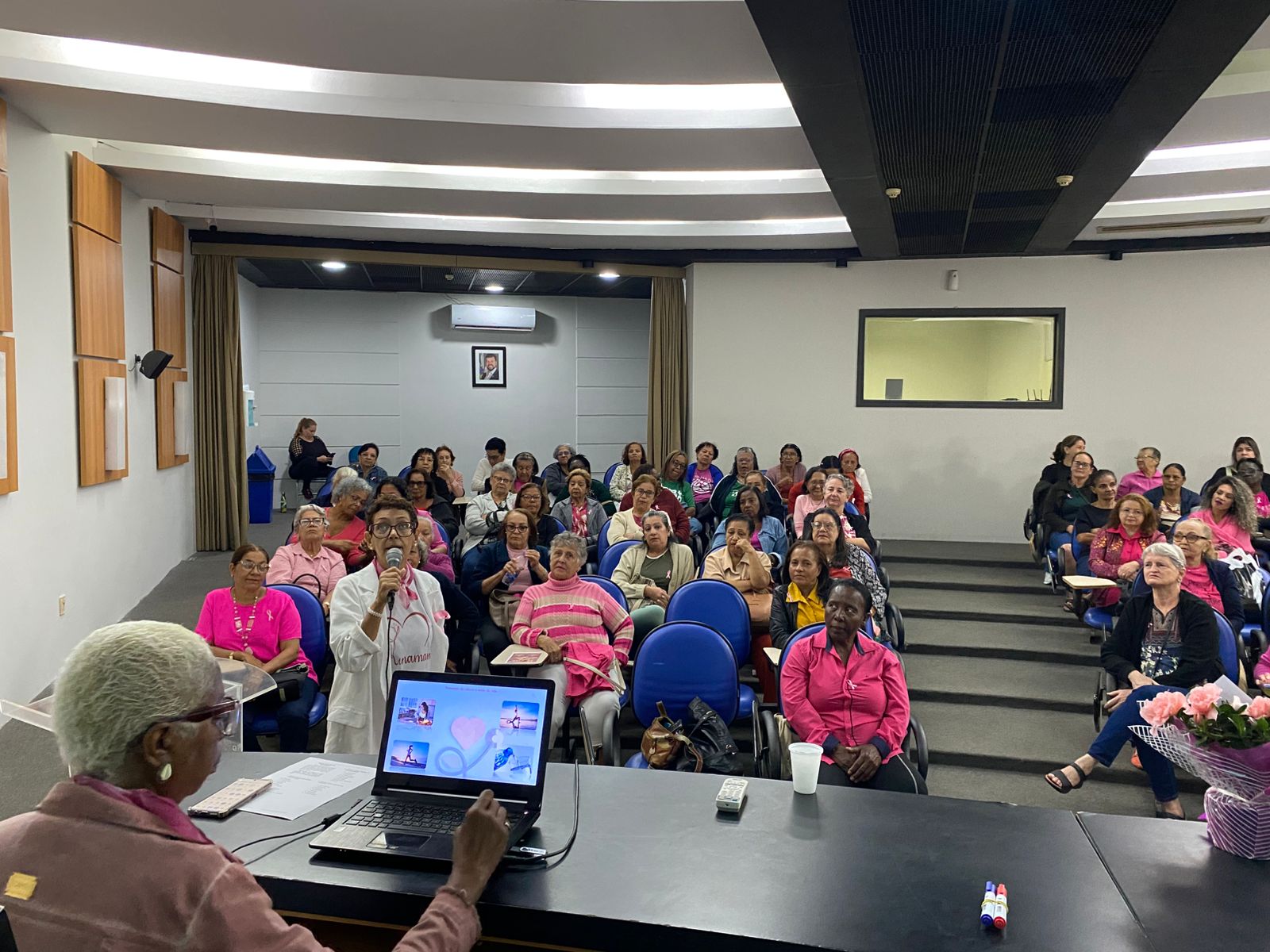 Nesta terça-feira (21), o Programa Cidade da Melhor Idade promoveu um encontro em alusão ao Outubro Rosa, no Paço Municipal. A ação, voltada às participantes do programa, teve como foco a conscientização sobre a importância da prevenção e do diagnóstico precoce do câncer de mama.