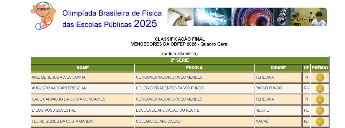 O Colégio de Aplicação de Macaé (CAp) celebra uma grande conquista acadêmica: dois estudantes foram medalhistas na Olimpíada Brasileira de Física das Escolas Públicas (OBFEP) 2025, garantindo uma medalha de ouro e uma medalha de bronze.