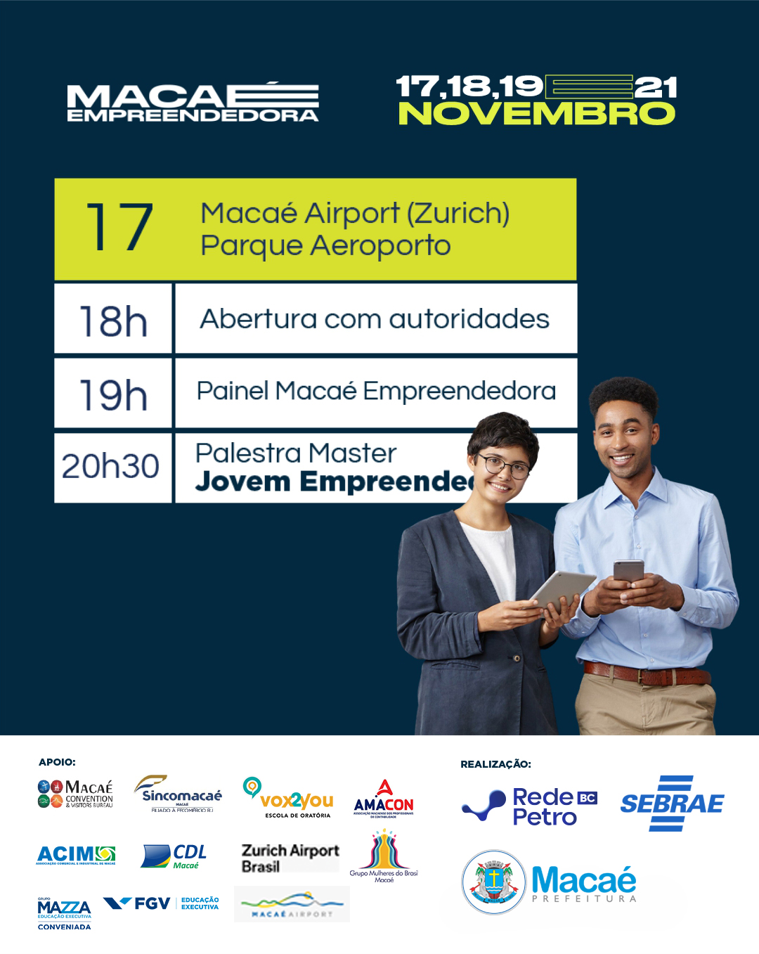 Em comemoração à Semana Global de Empreendedorismo, Macaé desenvolveu o fórum Macaé Empreendedora. Já na sua terceira edição, será realizada nos dias 17 a 21 de novembro em várias regiões da cidade. A Macaé Empreendedora contará com painéis de empreendedores locais de sucesso, pitch com os empreendedores, rodada de negócios e palestras master em empreendedorismo como com a especialista da FGV, Solange Pose Garcia, que irá abordar ‘Mulheres que Transformam Ideias em Resultados: o Poder do Empreender’ – pontuou o secretário de Desenvolvimento Econômico, Rodrigo Vianna.
