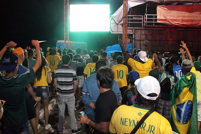 Na Aroeira, antes do trio elétrico com a Banda Balacobaco, Franciele, moradora do Morro de Sant´anna, se uniu aos amigos Michel da Silva, de 18 e Márcia Rogéria, de 15, para acompanhar cada lance da seleção pelo telão. “Se tiver novamente, vamos voltar”, disseram.