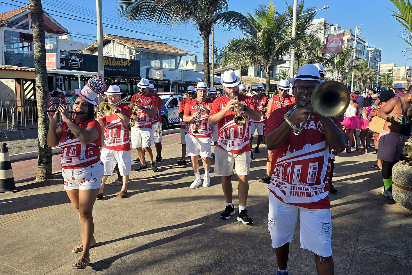O Cortejo Charanga Lyra se apresentou na tarde deste domingo (15), animando a todos que estavam na Praia dos Cavaleiros para curtir o terceiro dia de Carnaval da Alegria em Macaé.