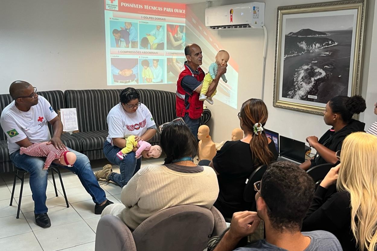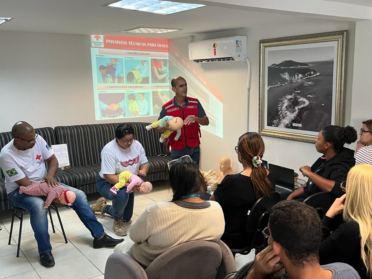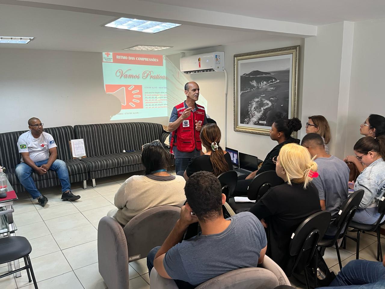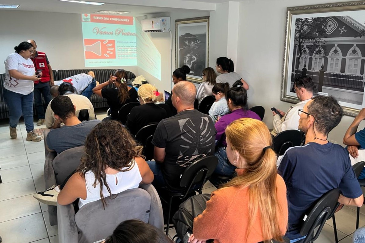 A capacitação abordou temas como PCR, engasgo, controle de hemorragia, curativos, desmaio, crise convulsiva, intoxicações e lesões traumáticas