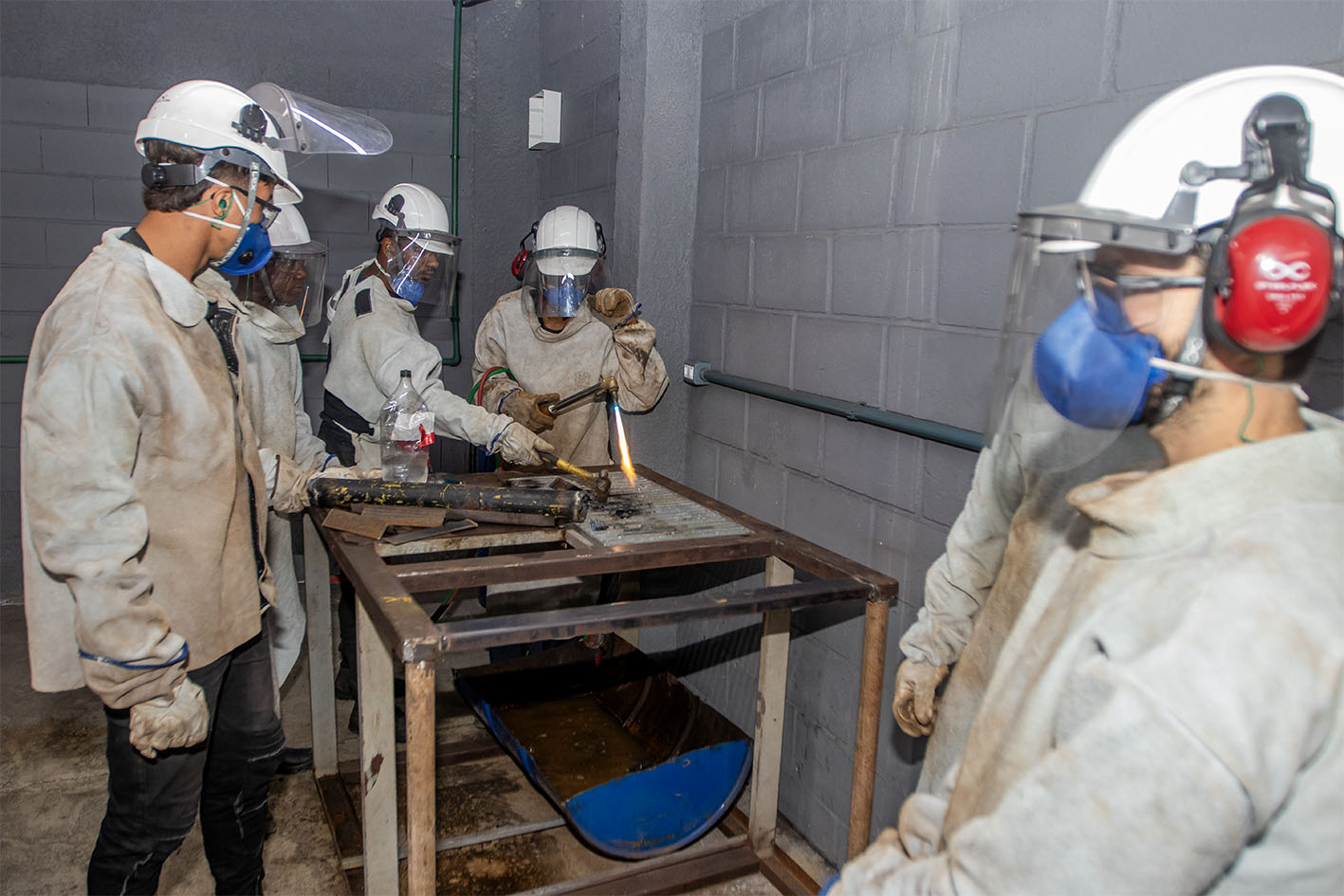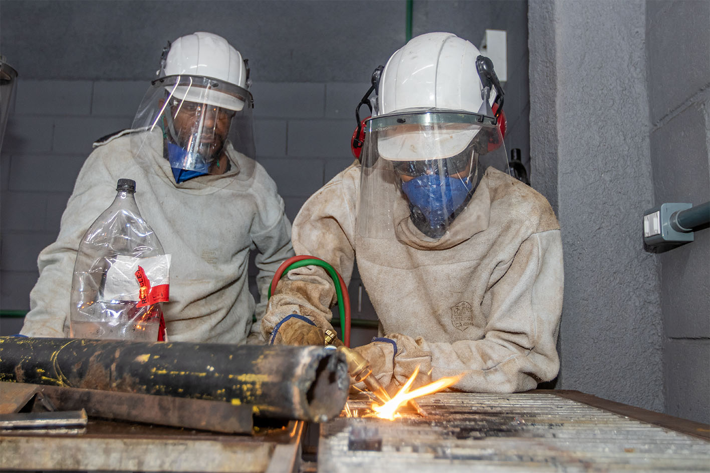 Junto às turmas, o pedagogo Raphael Cardoso repassa orientações específicas teóricas e práticas essenciais para a fabricação e manutenção de estruturas e componentes metálicos, abrangendo desde a leitura de projetos até a execução das técnicas específicas. Na Caldeiraria, por exemplo, ele apresenta temas como leitura e interpretação de desenho técnico e corte e conformação. Já na solda são apresentadas questões como, processos de soldagem e preparação e acabamento.