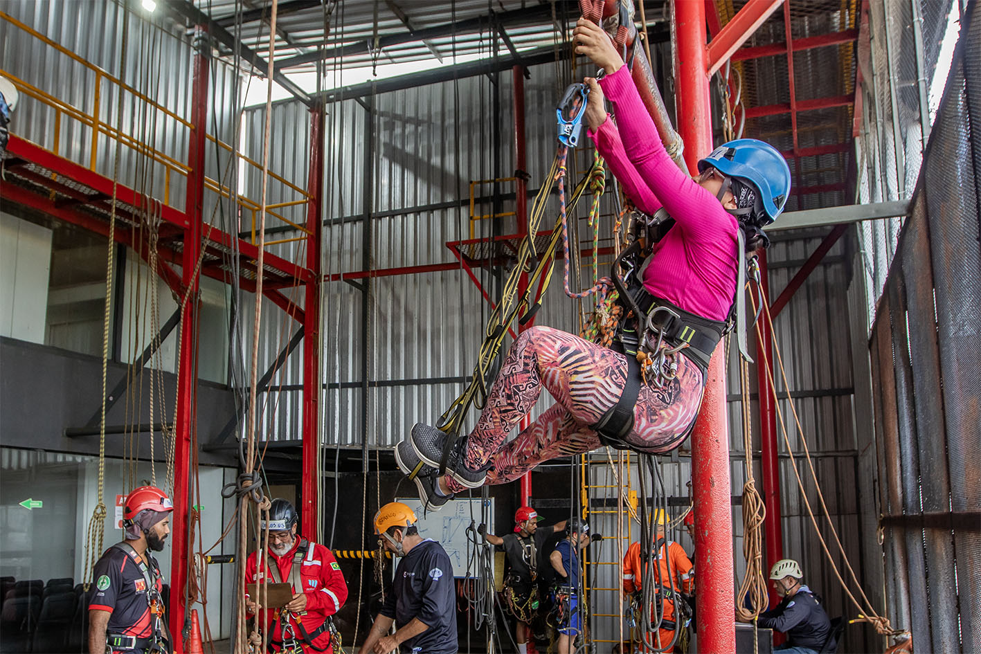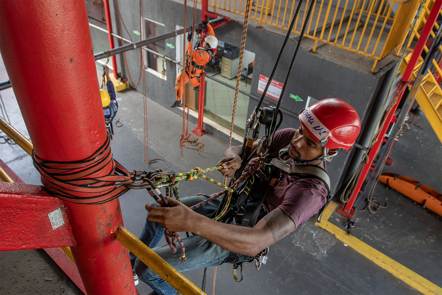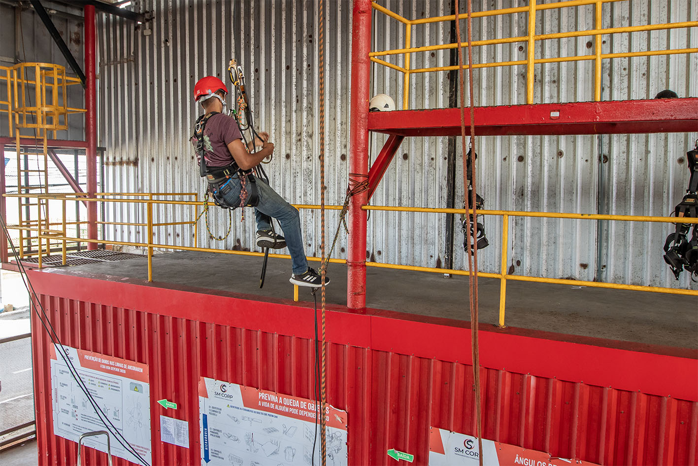 Cordas, mosquetões e equipamentos de proteção individual fazem parte das aulas práticas do curso de Acesso por Cordas. A turma Nível 1 (N1) também é inclusiva e conta com muita coragem e vontade de vencer. Diante das aulas teóricas e práticas, que abrangem conhecimentos básicos de normas, habilidade e concentração, os alunos aprendem tarefas em altura sob supervisão, montar sistemas de acesso, realizar resgates e trabalhos com cordas de forma segura e a utilizar equipamentos. Deivid Correa, de 40 anos, salientou que estar na aula é a realização de um sonho antigo. “Tenho três filhos e esse curso tem um valor mais alto. Sou muito grato à prefeitura. Temos que nos qualificar para conseguir melhores ocupações”, disse o pintor hidrojatista morador da Barra.