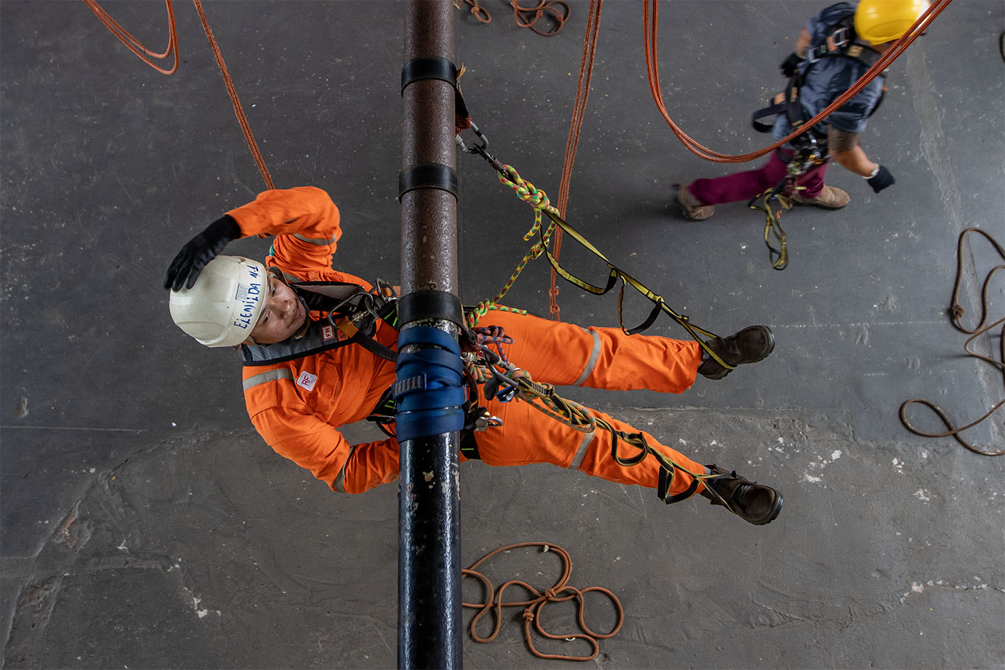 A formação conta com técnicos especializados. Nas aulas teóricas são repassados conhecimentos, processos de trabalho, equipamentos, regulamentações do setor (como a NR 37, que estabelece regras de segurança), e procedimentos operacionais. Já nas aulas práticas que acontecem nos espaços de treinamento, os participantes recebem orientações quanto às habilidades técnicas específicas com foco na segurança e eficiência das operações. Com brilho no olhar, atenção e foco para aprimorar as competências, os participantes estão mostrando dedicação, comprometimento e força de vontade .