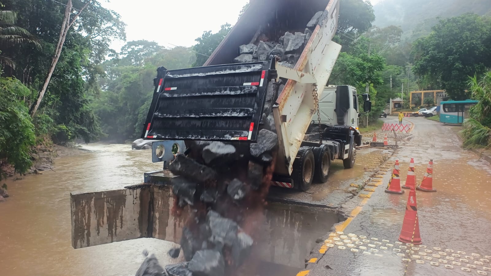 Equipes da Prefeitura seguem mobilizadas na Serra Macaense, que enfrenta uma série de transtornos causados pelas fortes chuvas que atingiram diversas localidades da região nos últimos dias.