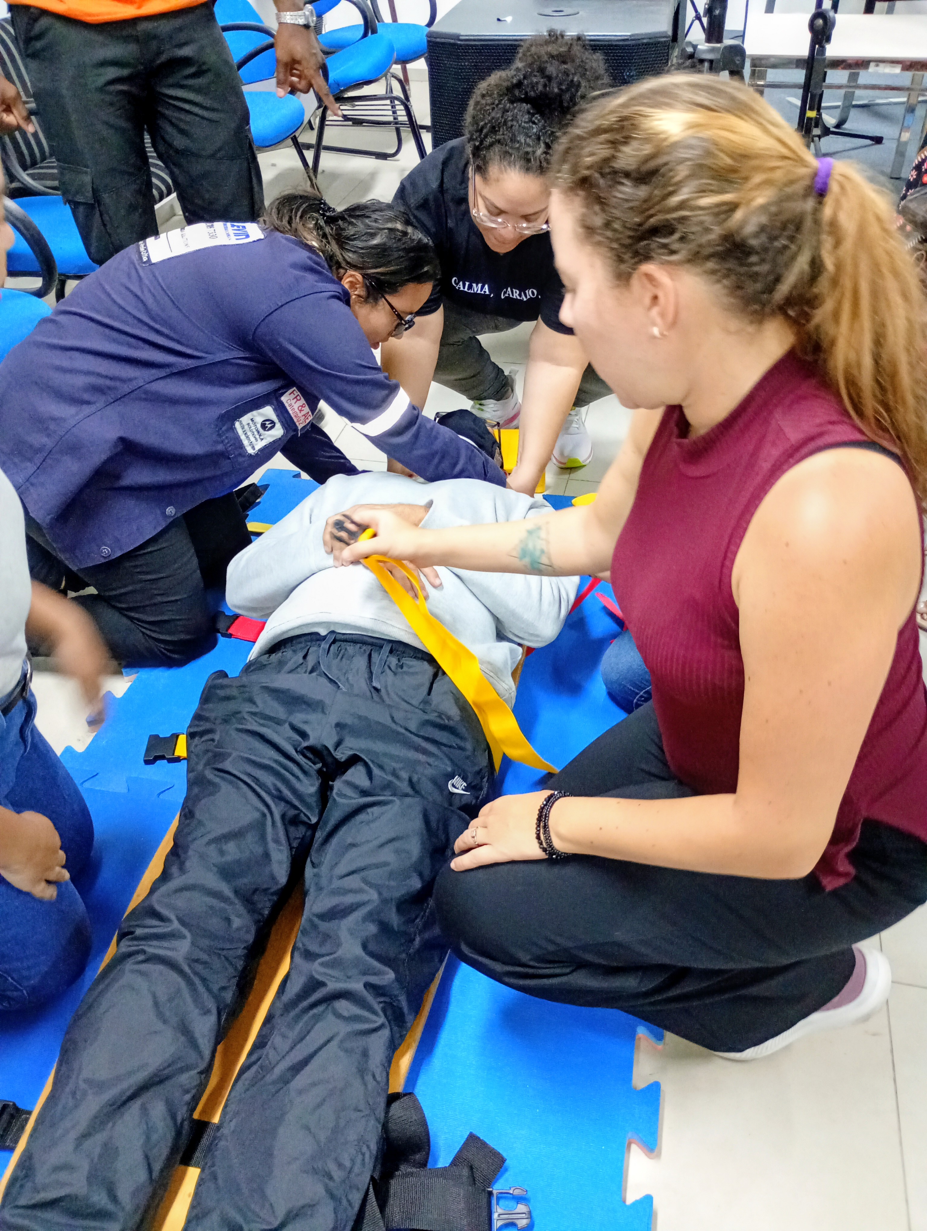 Durante a atividade, os voluntários puderam simular diferentes situações de emergência e aplicar as técnicas já vistas na parte teórica do curso