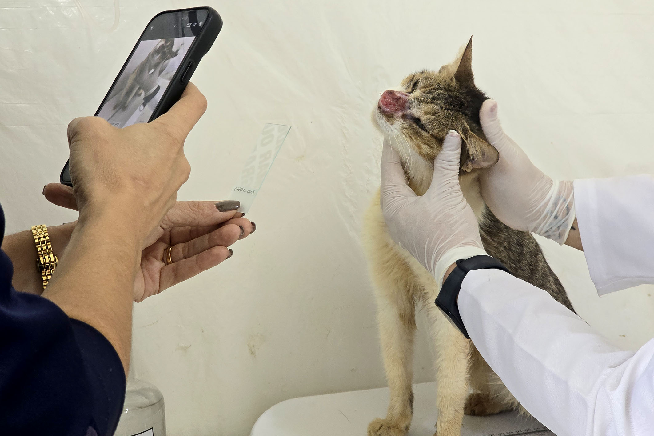 Maria Lúcia Barbosa também teve seu “ Tontom” examinado. “Ele já passou por vários tratamentos e essa ferida aberta nada de curar. Temos receio. Amo meu gato. O Dia D é muito importante. Estou grata”, contou..Já Giselli Ribeiro levou Viego e Blue para serem atendidos. Ela recebeu orientações e tirou dúvidas sobre a doença, cujas características não aparecem nos seus felinos.