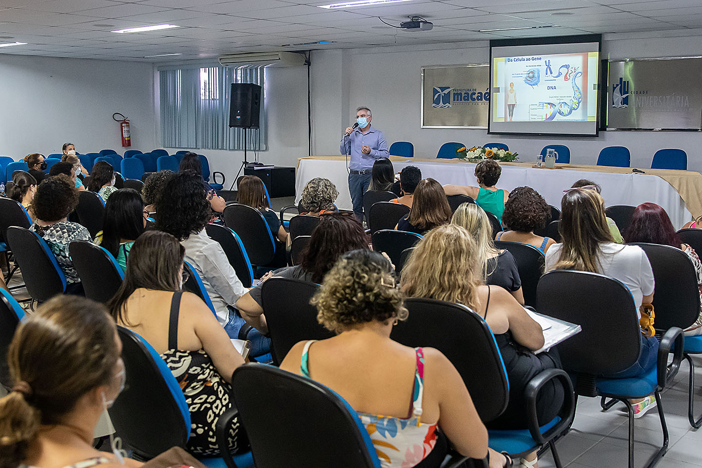 Em alusão ao Dia Mundial das Doenças Raras, 28 de fevereiro, a Coordenação de Educação Inclusiva da rede municipal realizou, na tarde desta quinta-feira (17), uma palestra sobre o tema, no auditório Cláudio Ulpiano, Cidade Universitária. A formação continuada de professores foi um dos principais objetivos do evento que integra o projeto ‘Todos por uma Macaé inclusiva’.