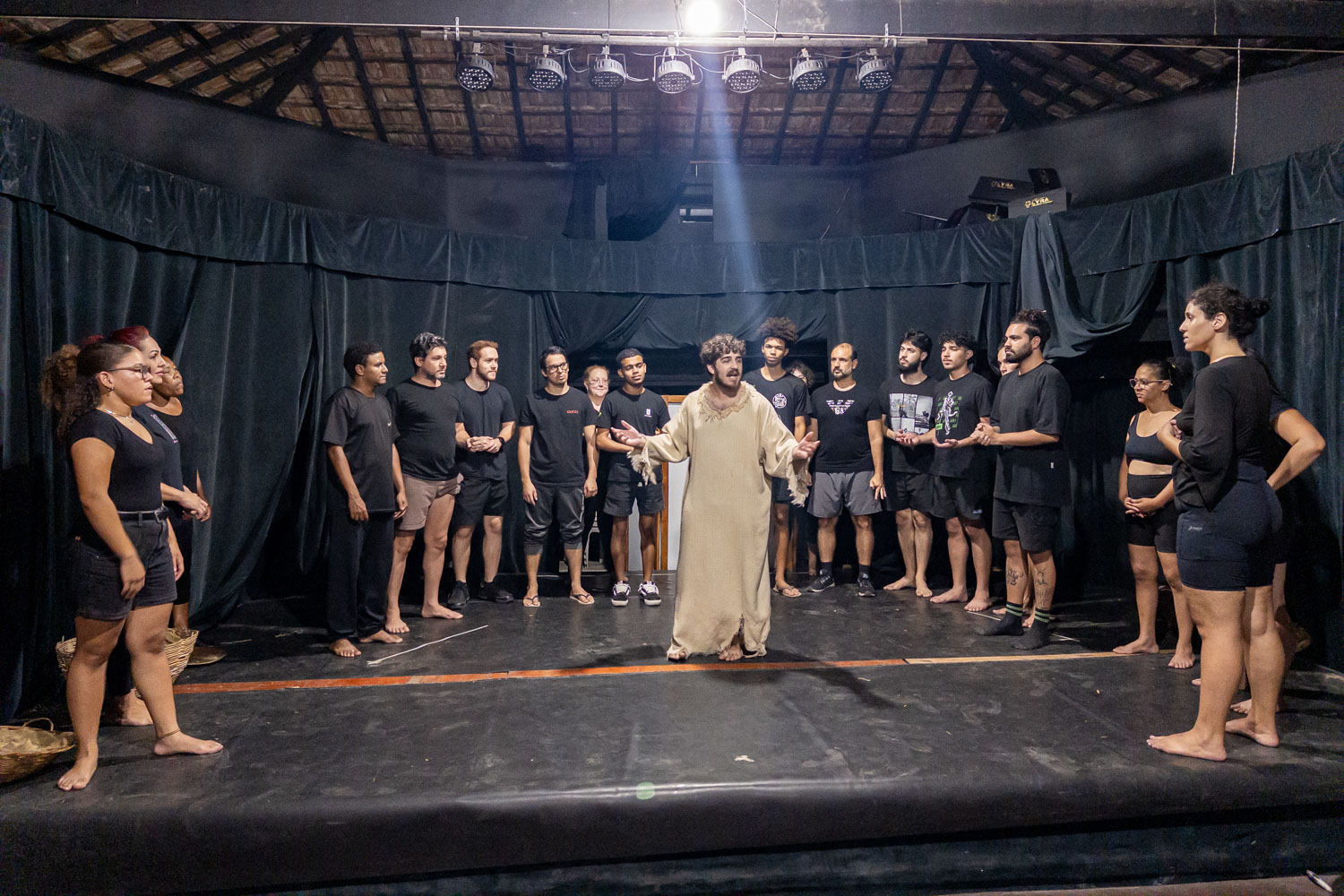 A diretora destaca ainda que alunos da Escola Municipal de Artes Maria José Guedes (Emart), que forma técnicos em Teatro, conseguiram conquistar personagens de destaque na audição de seleção de elenco, demonstrando a boa formação da escola. Attilio Giovanne, formado este ano no Curso Técnico de Teatro da Emart (turma T23) interpreta Jesus. Maria, mãe de Jesus, é interpretada por Tay Joventino e Maria Madalena por Isabela Constantino. O texto do espetáculo é de Taty Moraes e Haddefinir.