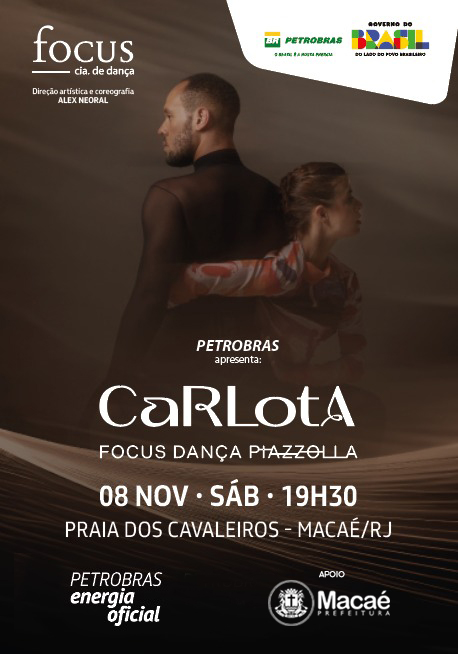 O espetáculo Carlota Focus Dança Piazzolla será apresentado neste sábado (8), às 19h30, na Praia dos Cavaleiros. O evento é patrocinado pela Petrobras e conta com o apoio da Prefeitura de Macaé.