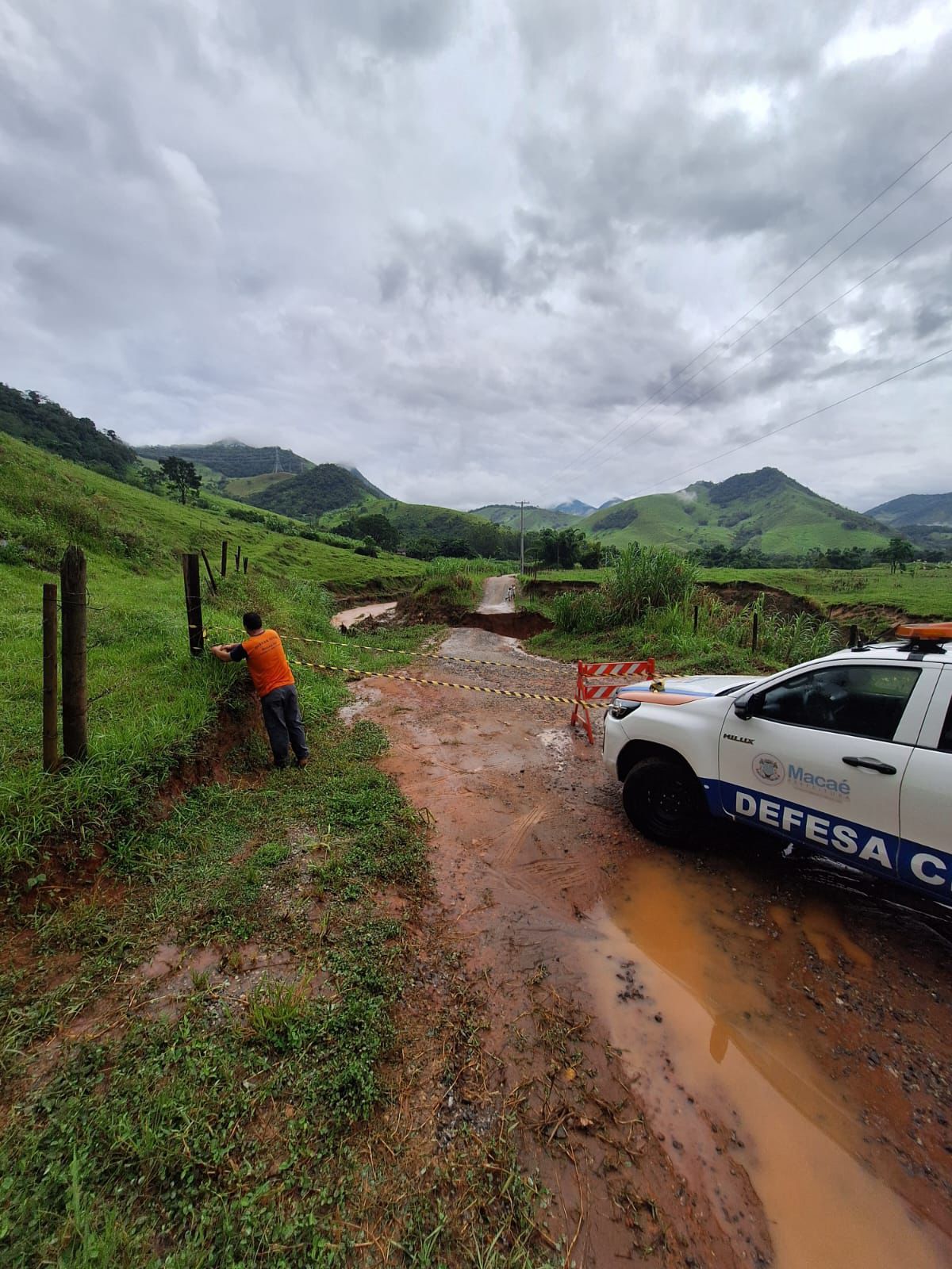A Estrada da Turma (Trapiche-Óleo) foi interditada pela Secretaria Executiva de Defesa Civil de Macaé na tarde desta terça-feira (24). A medida foi adotada após a via sofrer erosão com o aumento do volume do rio, causado pelos acumulados significativos de chuvas nos últimos dias que atingem principalmente a região serrana do município.