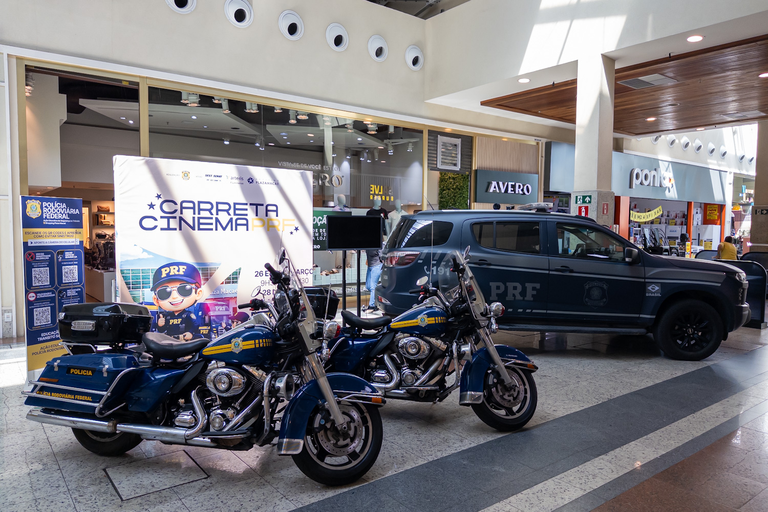 Os estudantes também visitam, no interior do shopping, a exposição de motocicletas de batedores de autoridade e de uma viatura utilizada pelos Grupos de Operações Especiais da PRF. Eles recebem também a ‘revistinha Parada Divertida’ do Serviço Social do Transporte e Serviço Nacional de Aprendizagem do Transporte (Sest/Senat), parceiro do projeto, assim como a empresa concessionária de rodovias, Arteris.