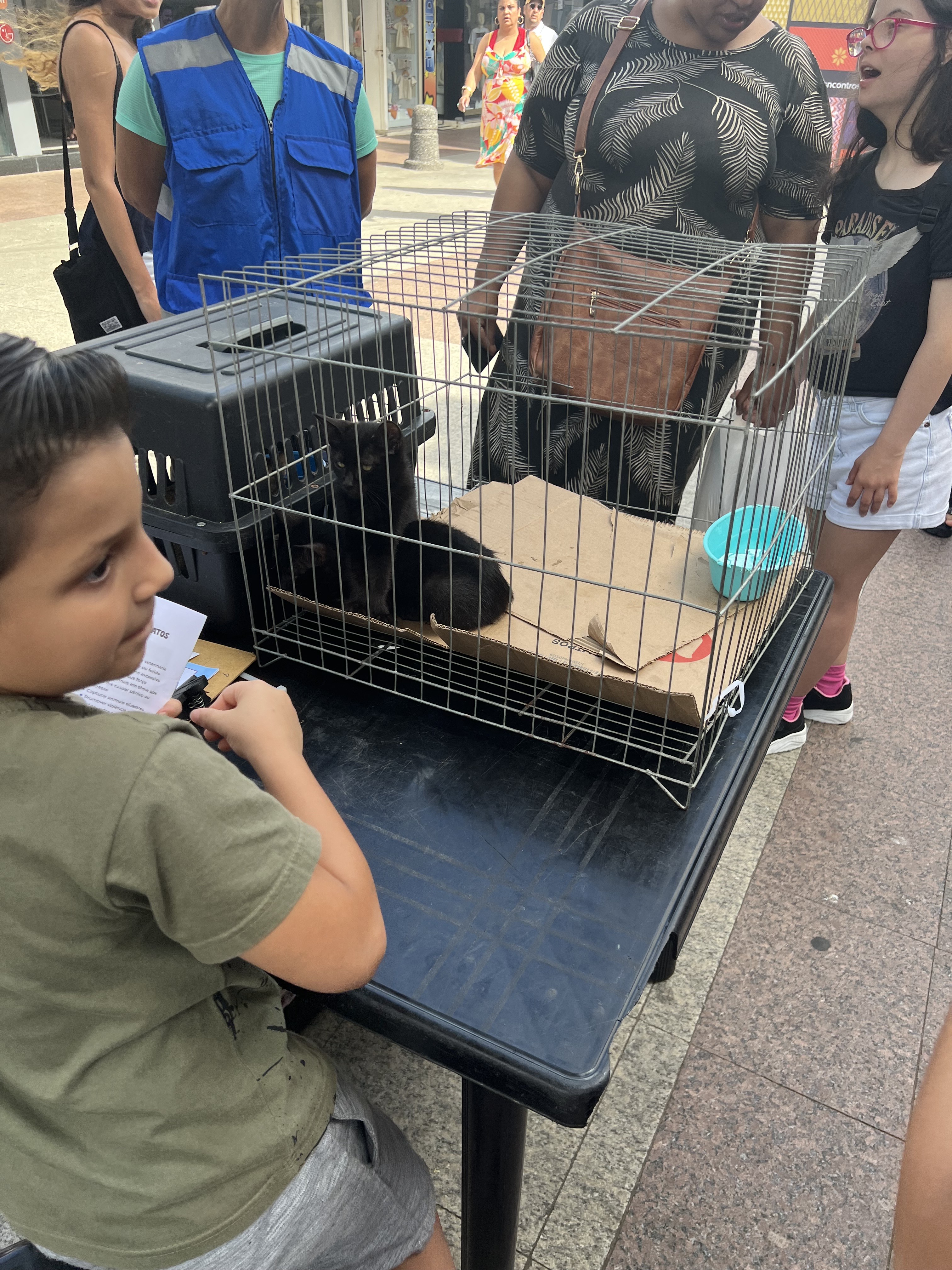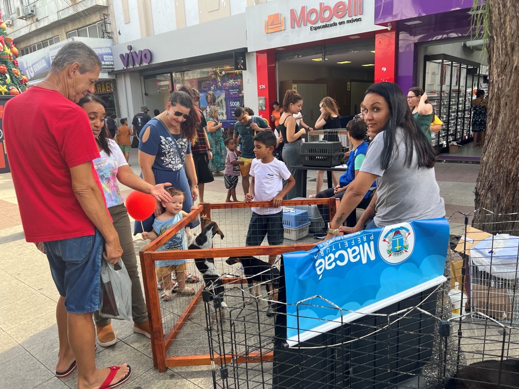 Na última quinta-feira (8), a Secretaria Municipal de Proteção Animal levou cerca de 20 animais para adoção. A presença dos pets chamou a atenção de quem passava pelo local, especialmente de crianças e jovens em recesso escolar. Um dos momentos marcantes foi a adoção da cadelinha Maria Clara pela pequena Valentina, de cinco anos.