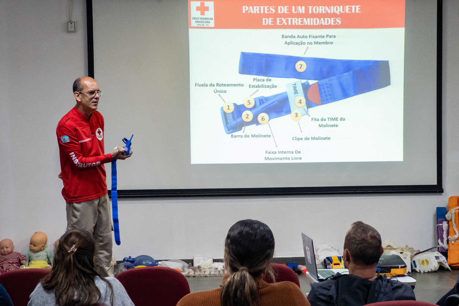 Dando continuidade ao curso de Primeiros Socorros, promovido pela Secretaria Municipal de Gestão de Pessoas em parceria com a Cruz Vermelha de Macaé, foi realizada nesta terça-feira (21), no auditório do Núcleo de Educação Permanente em Saúde (NEPS) do Hospital Público de Macaé, a aula teórica e prática do módulo II, voltada a trabalhadores da saúde, da educação e de outros órgãos da administração pública.