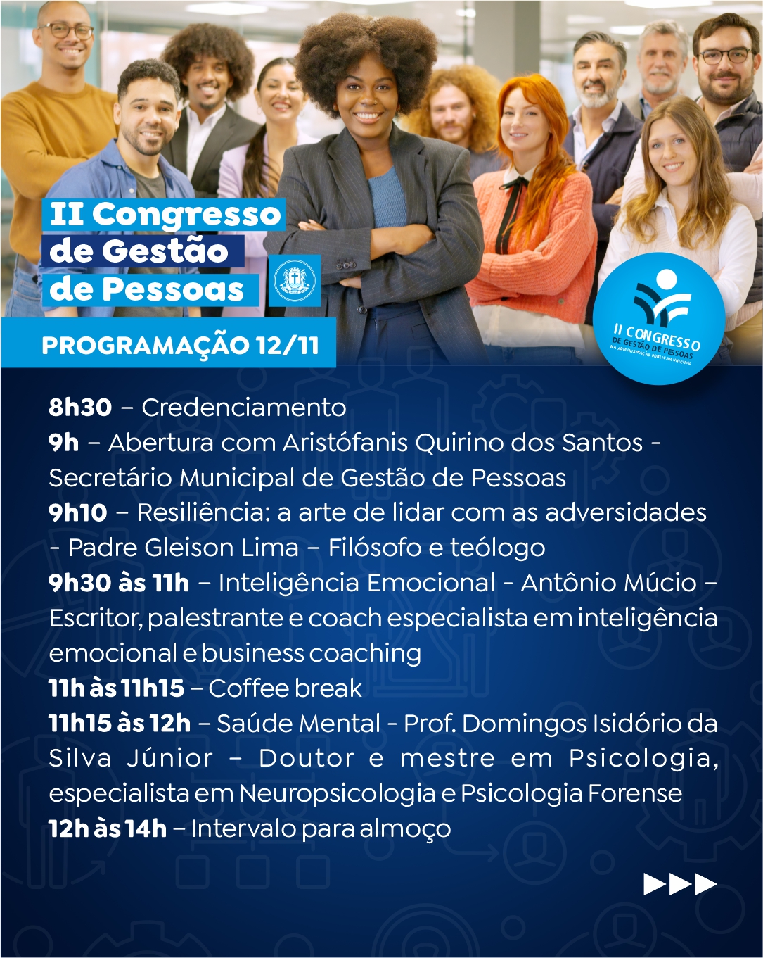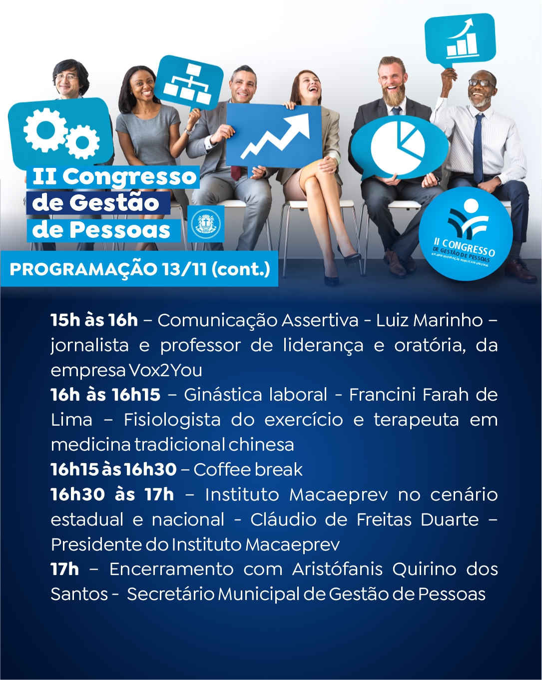 - 17h00: Encerramento | Aristófanis Quirino, secretário municipal de Gestão de Pessoas