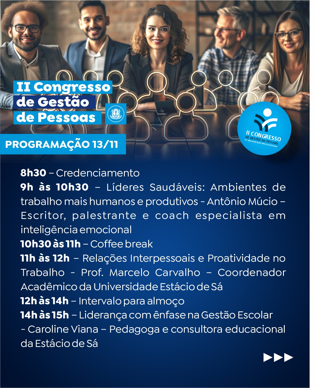 - 09h30 às 11h00: Inteligência emocional | Antônio Múcio, escritor, palestrante e coach especialista em inteligência emocional e business coaching