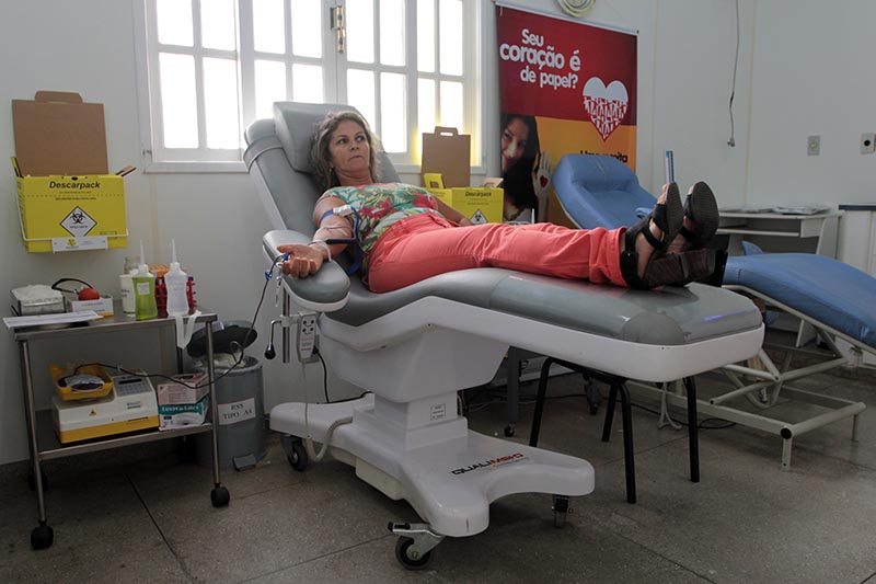 Orientações após a doação - Após a doação de sangue, a pessoa deverá seguir algumas orientações importantes, como beber bastante líquido nas primeiras seis horas e alimentar-se normalmente; não fumar nas duas primeiras horas e não praticar esportes radicais ou atividades de risco.