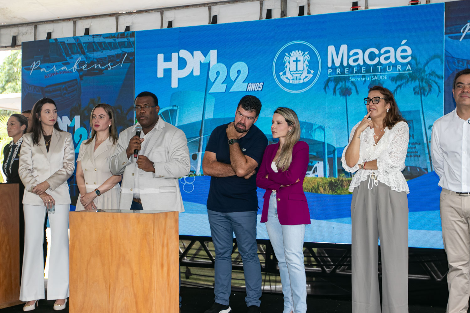 A solenidade de comemoração dos 22 anos do Hospital Público de Macaé (HPM), realizada na manhã desta sexta-feira (20), contou com uma programação especial. Entrega de ambulâncias, apresentação do projeto de ampliação da unidade, culto ecumênico e um lanche para servidores e autoridades.
