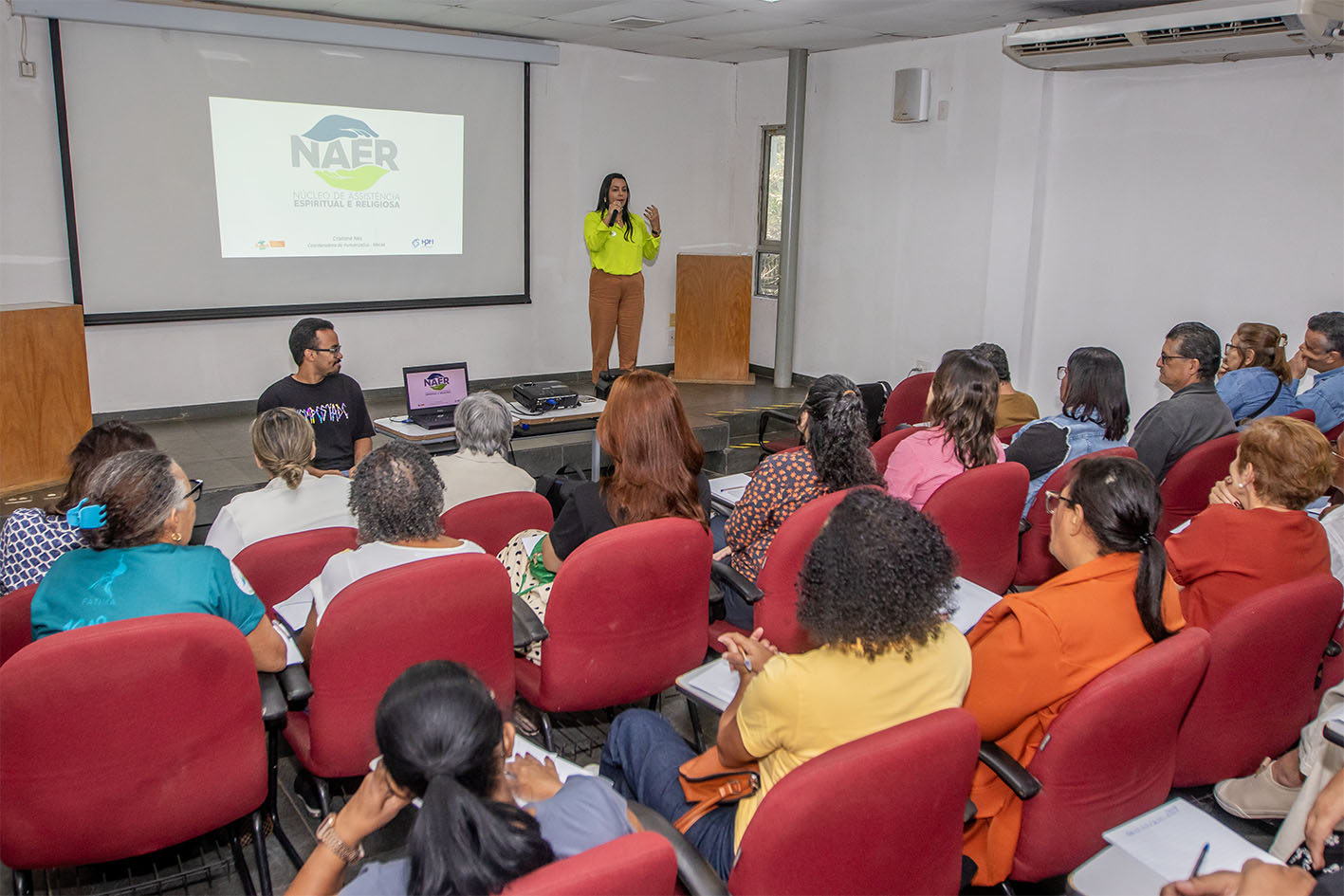 O Núcleo de Assistência Espiritual e Religiosa (NAER) realizou um curso de formação para voluntários no auditório do Núcleo de Educação Permanente em Saúde (NEPS), do Hospital Público de Macaé (HPM), na tarde desta quarta-feira (3). A capacitação prossegue nesta sexta-feira (5), de 8h às 12h.