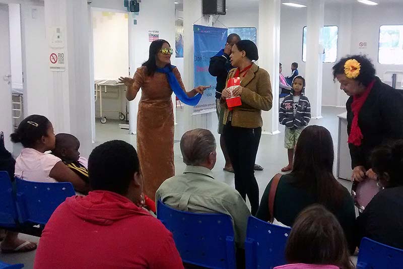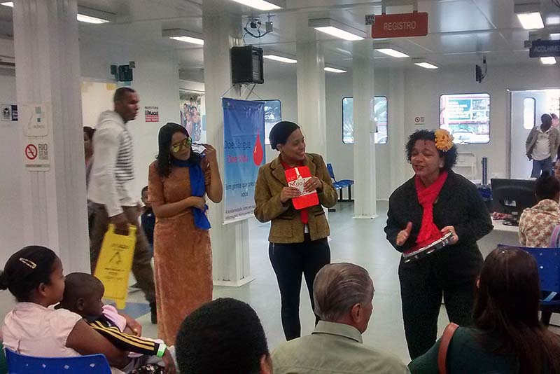 Nesse projeto há esquete teatral, informações e orientações sobre a saúde da população negra, que tem tendência à pressão alta e à anemia falciforme, entre outras doenças.
