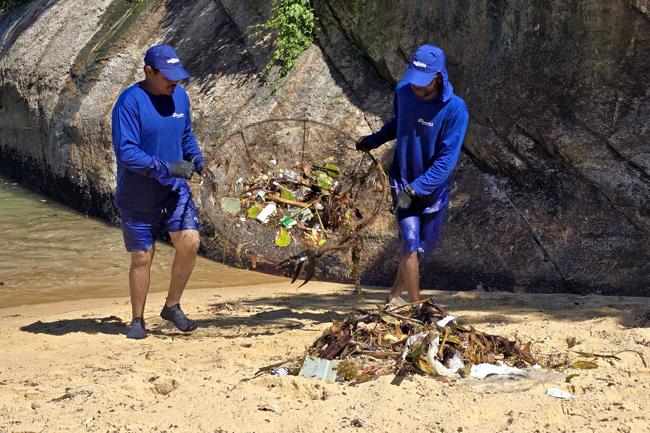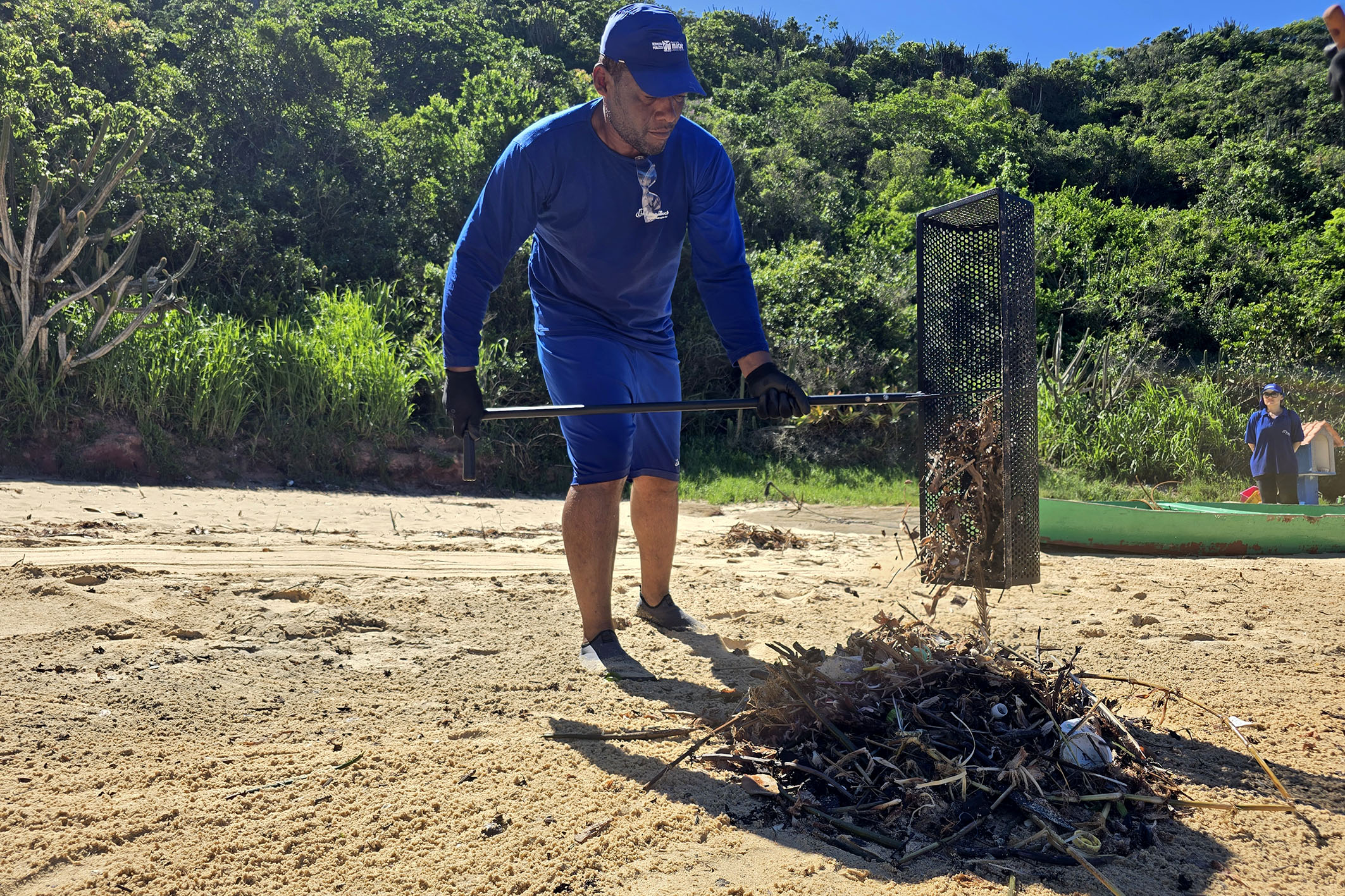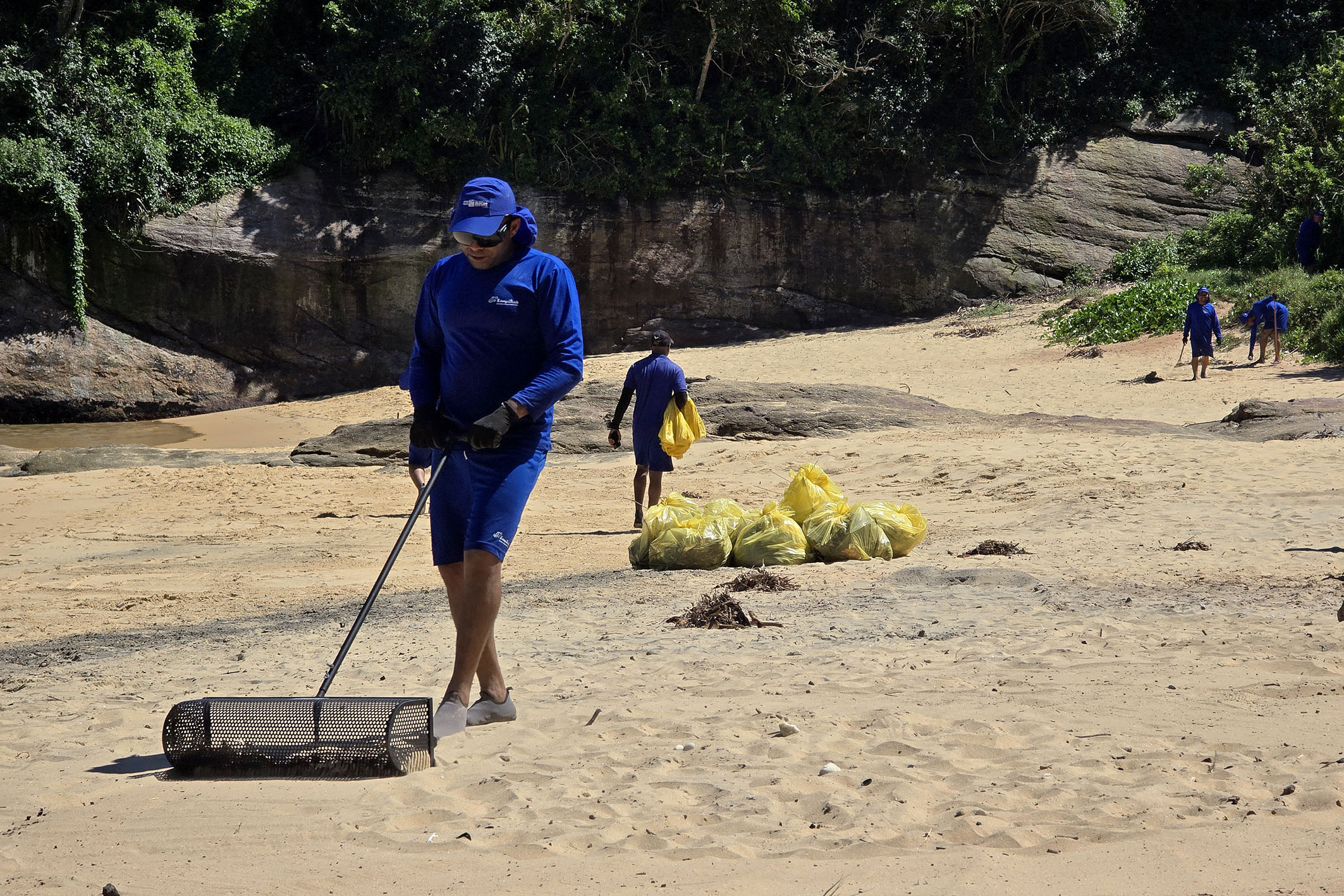 Os trabalhadores atuaram devidamente equipados com bonés apropriados, camisas com proteção UV, sapatilhas para evitar queimaduras nos pés e protetor solar. Além disso, utilizaram diversos materiais para a limpeza, com destaque para as peneiras circulares e as peneiras de puxar areia, que fizeram toda a diferença na retirada dos microlixos - como bitucas de cigarro, tampinhas de garrafa, fragmentos de vidro e pequenos plásticos. Ao final, foram retirados em média duzentos sacos de lixo de grande capacidade, mostrando a dimensão do esforço coletivo.