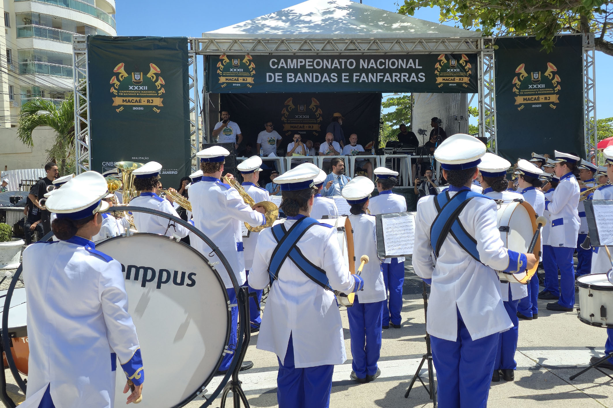 A orla de Imbetiba se transformou em um grande palco cultural neste fim de semana com a realização do XXXII Campeonato Nacional de Bandas e Fanfarras, que aconteceu neste sábado (29) e prossegue no domingo (30), a partir das 8h. O evento, organizado pela Confederação Nacional de Bandas e Fanfarras (CNBF), conta com o apoio da Prefeitura de Macaé, por meio da Secretaria de Educação, e movimenta a cidade com música, cores, talentos e apresentações.