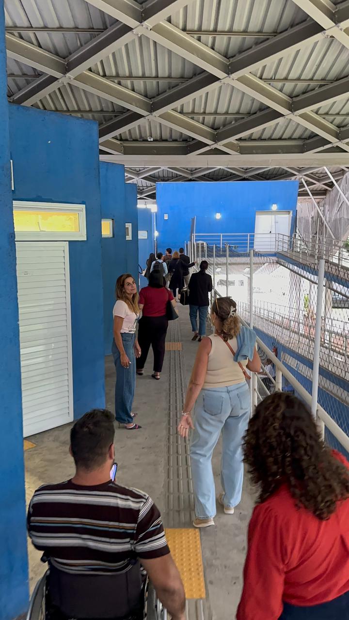 A equipe foi recebida pela coordenadora das sete unidades do Centro Municipal de Referência para Pessoas com Deficiência (CMRPDs), Danielle Favatto. Participaram da visita a secretária municipal de Desenvolvimento Social, Direitos Humanos, Acessibilidade e Economia Solidária, Nayara Ribas de Oliveira; o secretário municipal de Saúde, Lucas Rodrigues; a secretária municipal de Atenção Básica, Simone Sales; a coordenadora da Clínica do Autista, Lúcia Anglada; e a coordenadora-geral de Políticas para PCDs, Caroline Mizurine.