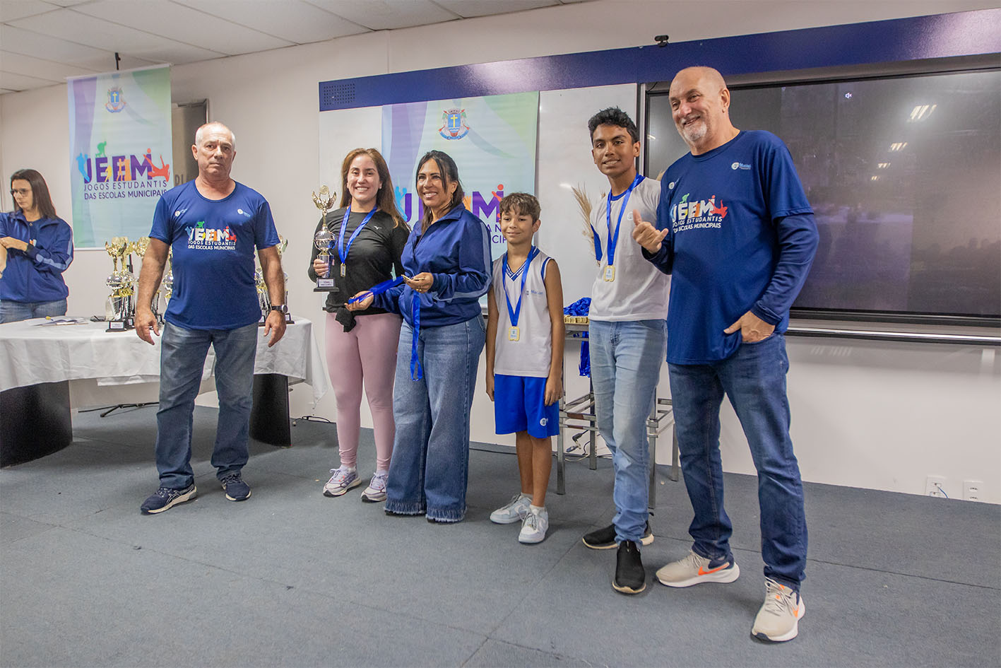 O encerramento dos Jogos Estudantis das Escolas Municipais (JEEM) foi marcado com a cerimônia de premiação dos Destaques 2025. A celebração é uma novidade desta edição que celebra os 33 anos da programação.  A entrega foi realizada nesta quinta-feira (23), no auditório Cláudio Ulpiano, na Cidade Universitária, com cerca de 250 alunos premiados com medalhas e troféus.