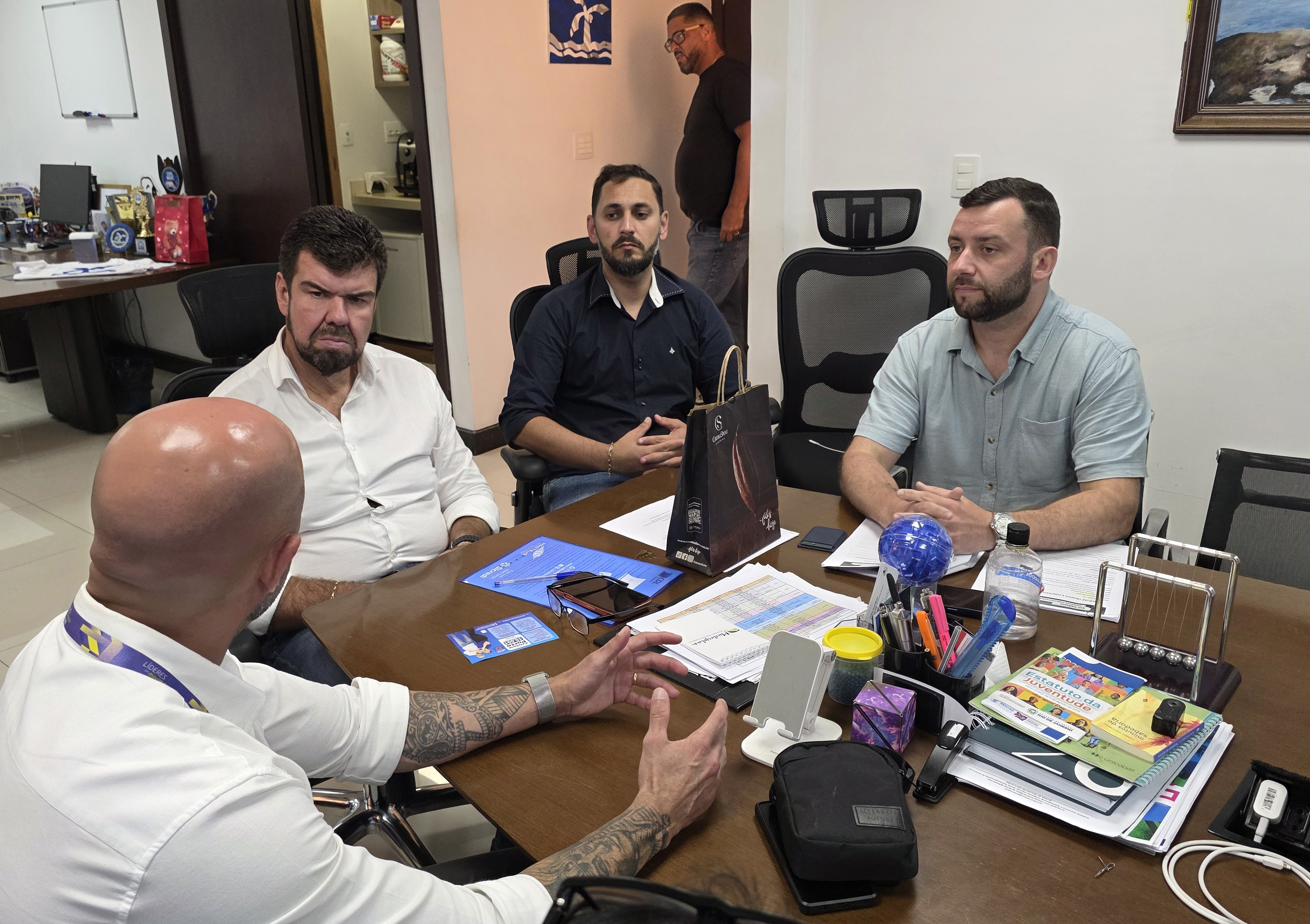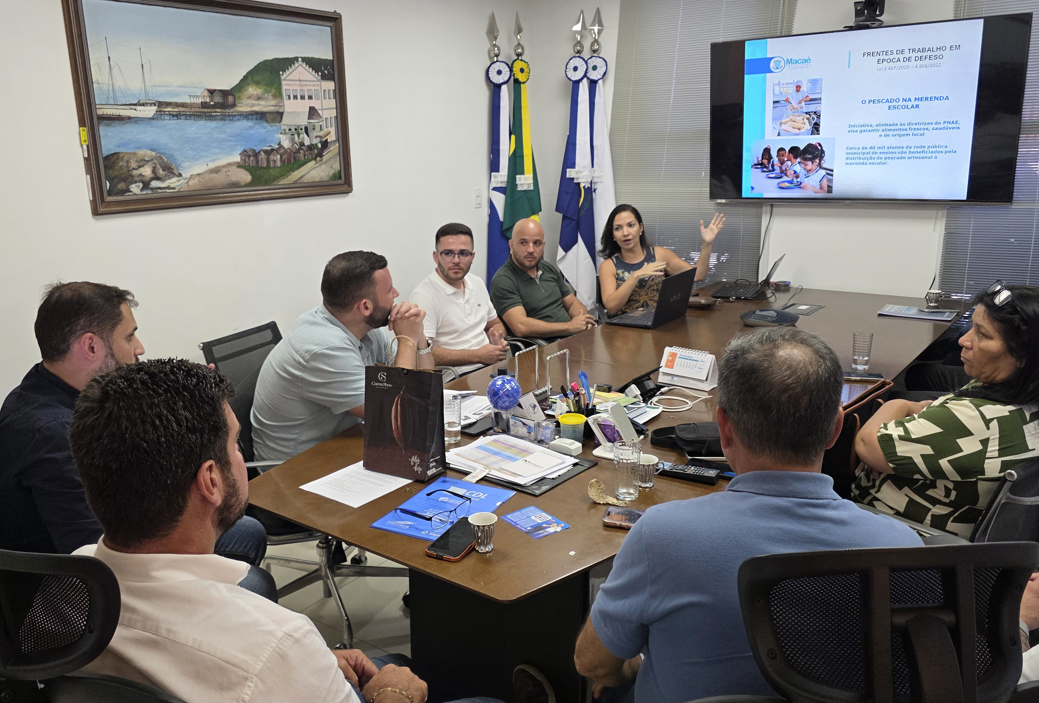 O prefeito Welberth Rezende recebeu as equipes das secretarias de Economia Solidária, Pesca e Aquicultura, e Desenvolvimento Econômico, além de representantes do Sebrae, em seu gabinete para debater a importância das iniciativas para o município.