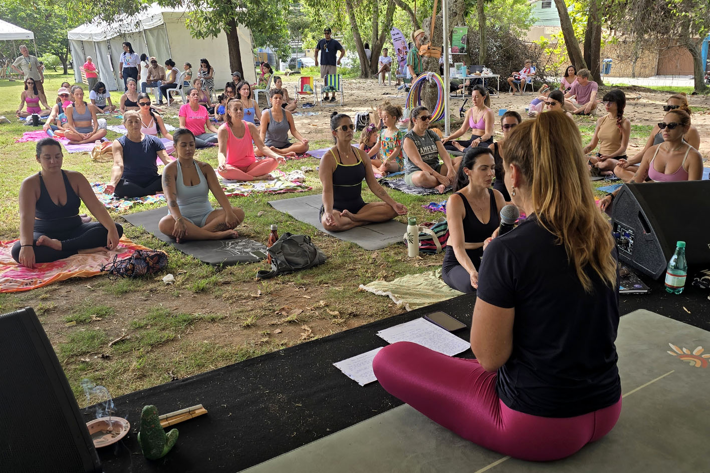 Para a professora Ana Cláudia, a importância de abrir a Feira Cultural da Mulher com a prática do yoga é permitir um estado de presença. “É silenciar a mente. Conectar com os corpos, com os nossos corpos, corpo físico, mental, sutil. Promovendo um estado de quietude, de tranquilidade, de serenidade, de bem-estar desde o início. E criando também uma conexão coletiva com o grupo todo, com as pessoas, com o ambiente, com tudo. Transformando esse encontro numa vivência linda. Os participantes mais engajados, tranquilos, mais abertos para o que vem, para as conexões todas”, afirmou.