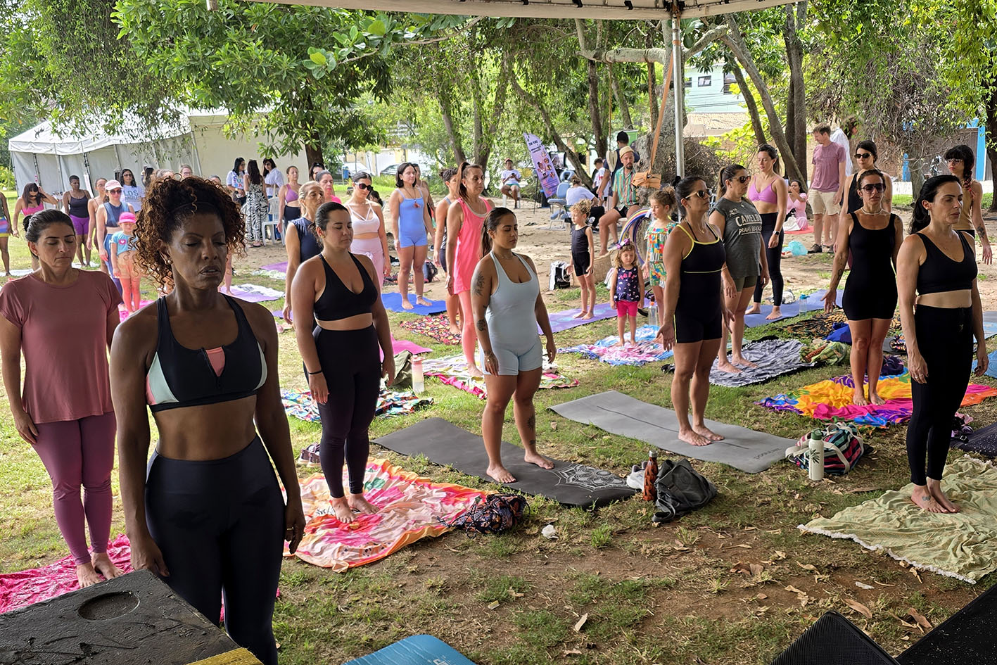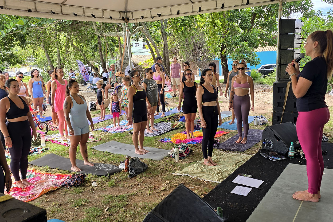Liliane Martin também fez a aula de yoga e pontuou a relevância da prática. “É muito importante a yoga para a gente poder se conectar com a gente mesmo, reconhecer e controlar nossas emoções”, analisou.