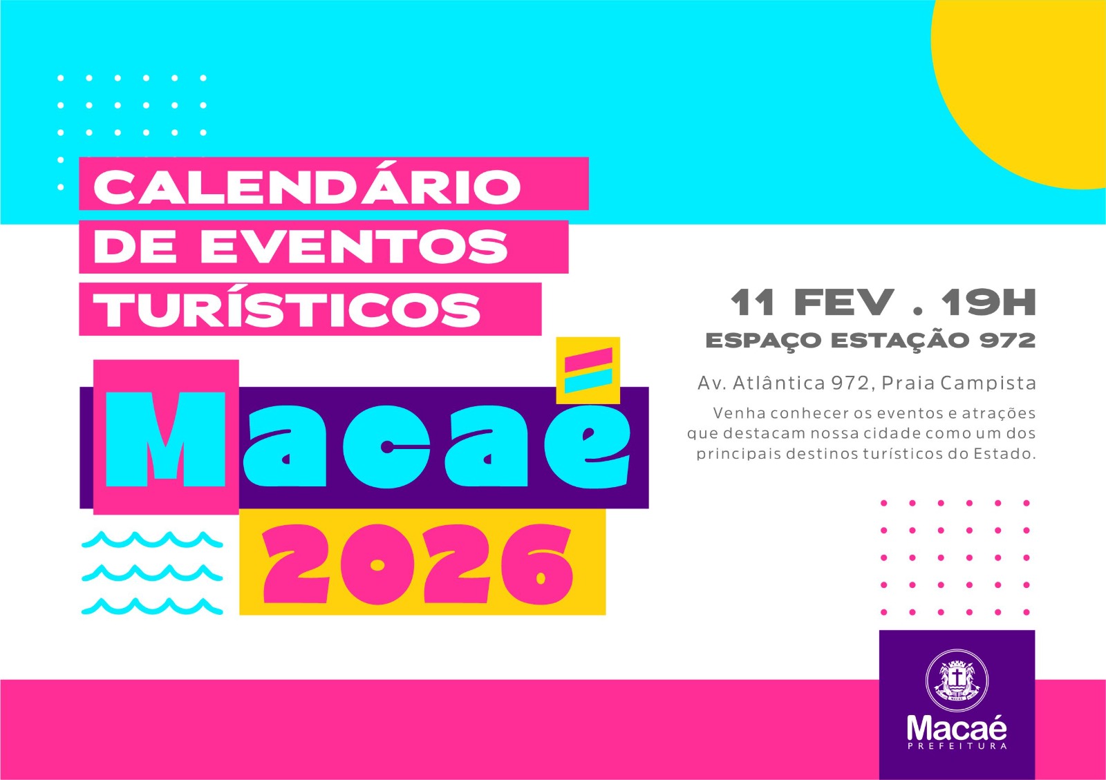 O Carnaval de Macaé, em fevereiro, é um dos destaques do Calendário de Eventos Turísticos 2026. O documento, organizado pela Secretaria de Turismo, traz cerca de 120 atrações voltadas a diferentes segmentos como esporte, cultura, gastronomia, entre outros. A programação diversificada ao longo do ano fortalece a economia local e o segmento turístico de forma não sazonal, contribuindo para o impulsionamento do setor. O lançamento da edição deste ano será no dia 11 de fevereiro (quarta-feira), às 19h, no Espaço 972, situado na Av Atlântica 972, Praia Campista.
