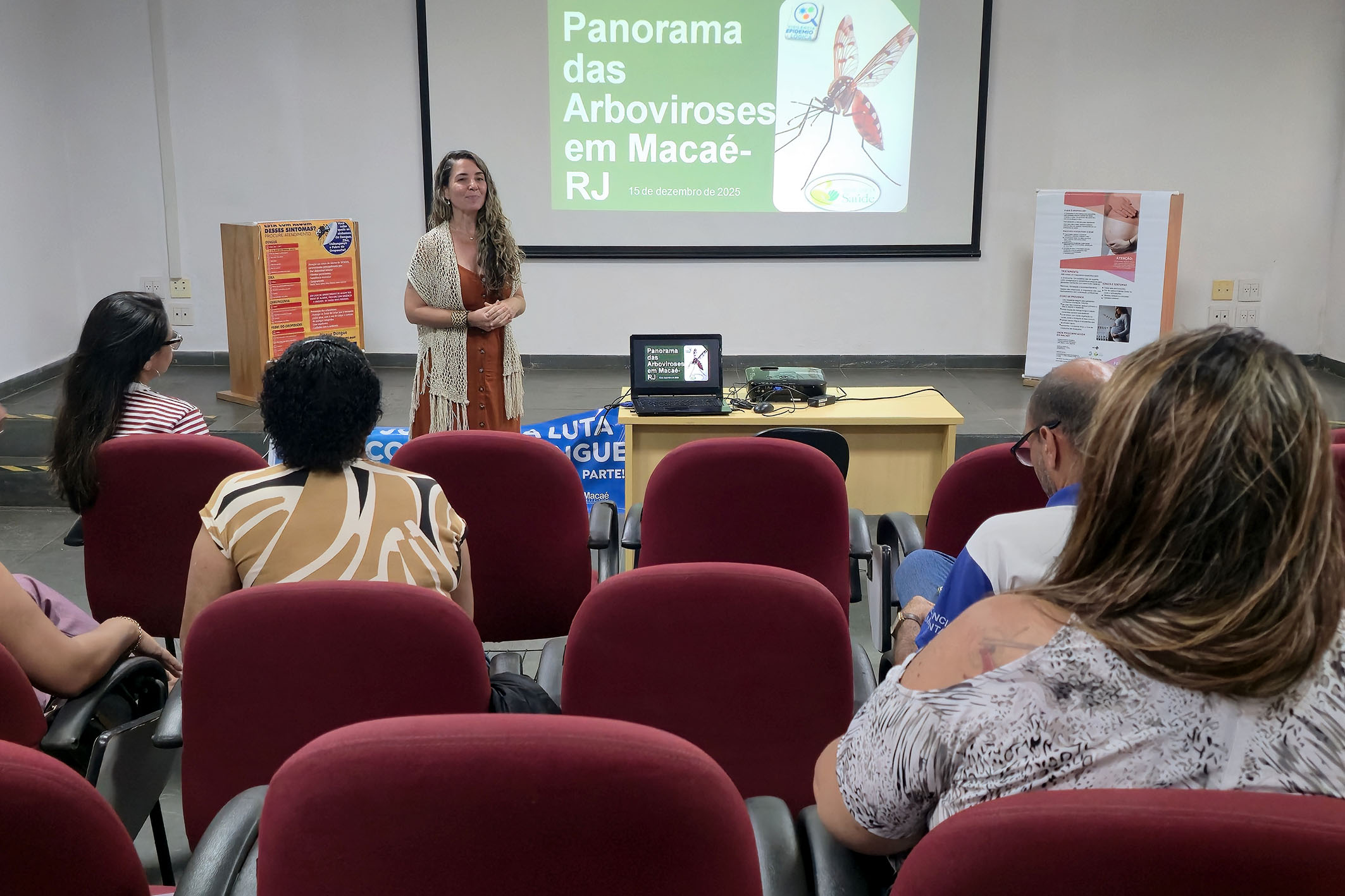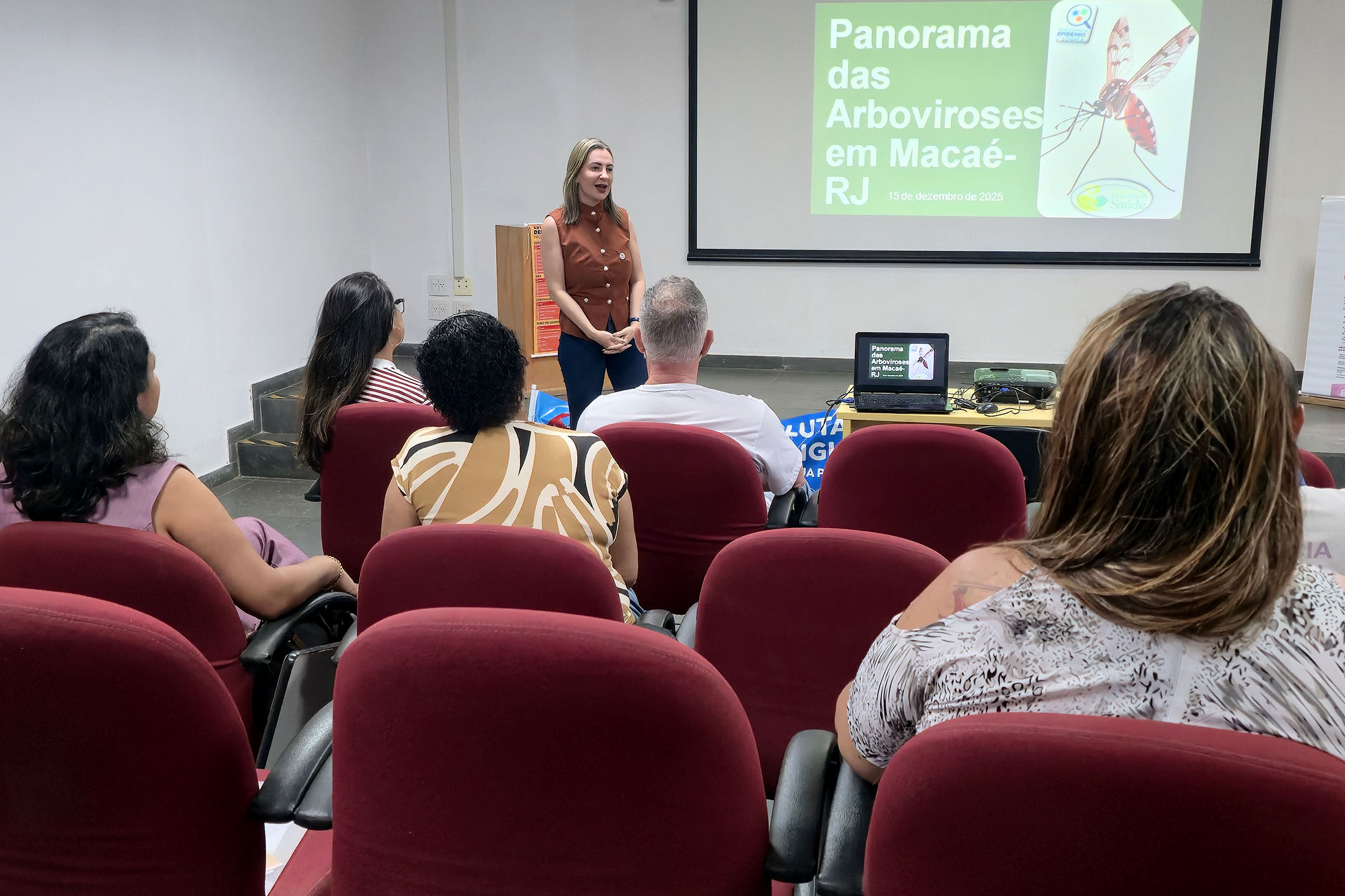 Com o objetivo de fortalecer as ações de enfrentamento às arboviroses, a Secretaria Municipal de Saúde de Macaé realizou, nesta segunda-feira (15), o Seminário sobre Arboviroses. O encontro, promovido por meio do Programa de Vigilância Epidemiológica, reuniu profissionais das redes pública e privada no auditório do Centro de Estudos do Hospital Público de Macaé.