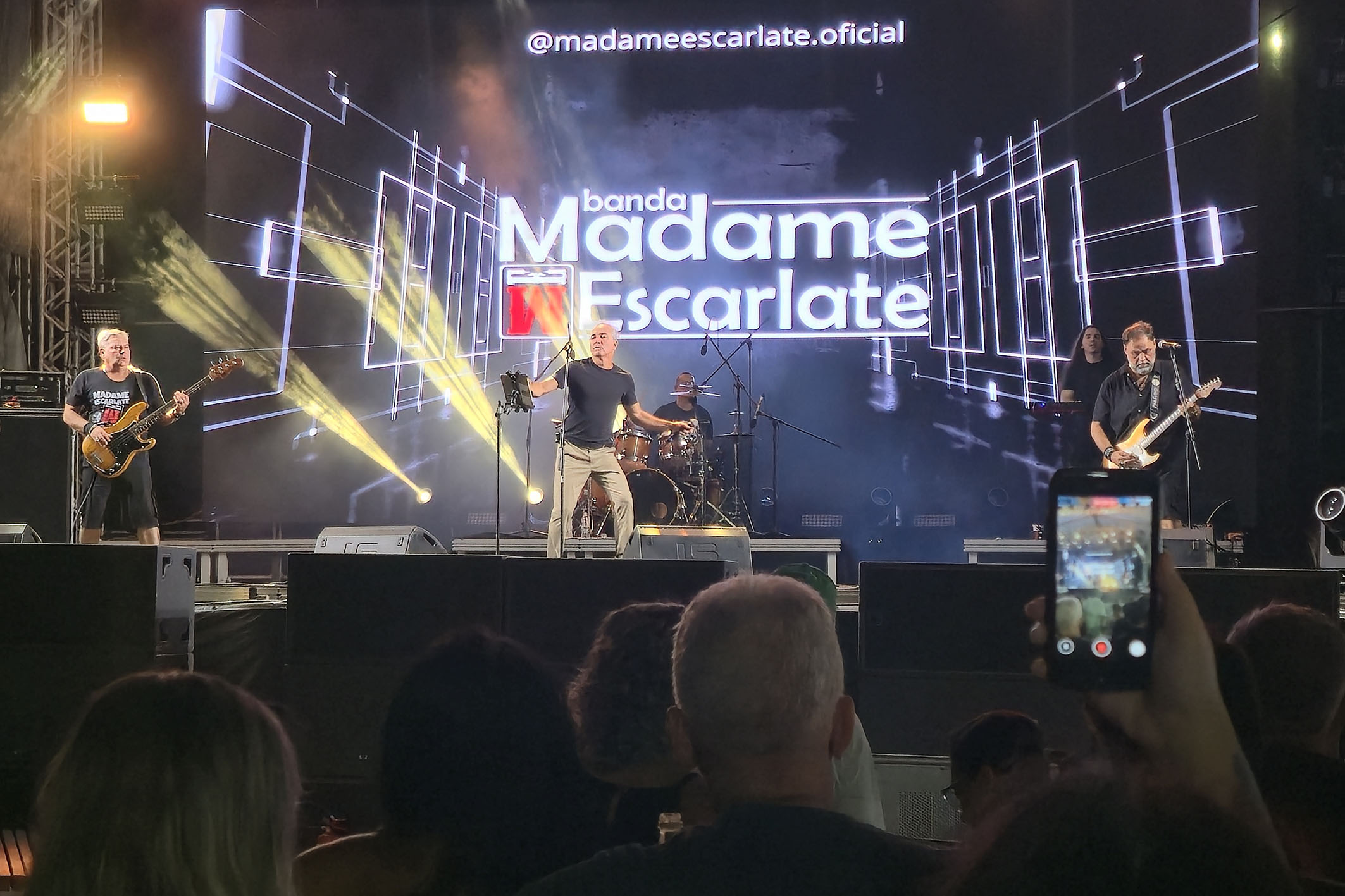 Com a energia lá em cima, a banda Madame Escarlate agitou o público na noite desta sexta-feira (30) na programação do Sesc Verão, em parceria com a Prefeitura de Macaé. O show, realizado no palco dos Cavaleiros, reuniu uma série de sucessos do rock nacional e internacional das décadas de 80, 90 e 2000 como Is This Love, do Whitesnake e Pro Dia Nascer Feliz, do Barão Vermelho.