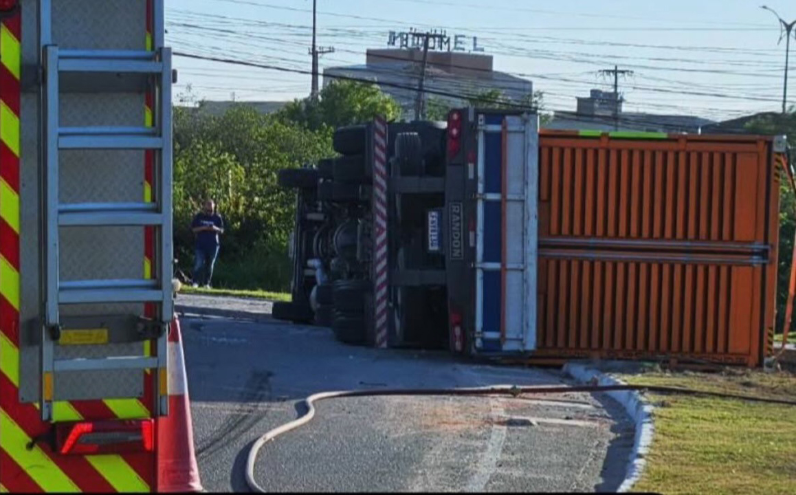 A Secretaria de Mobilidade Urbana informa que uma carreta tombou no Trevo das Bandeiras, causando interdição parcial no local, e também interdição ba Linha Verde entre trechos da Aroeira e Trevo das Bandeiras.