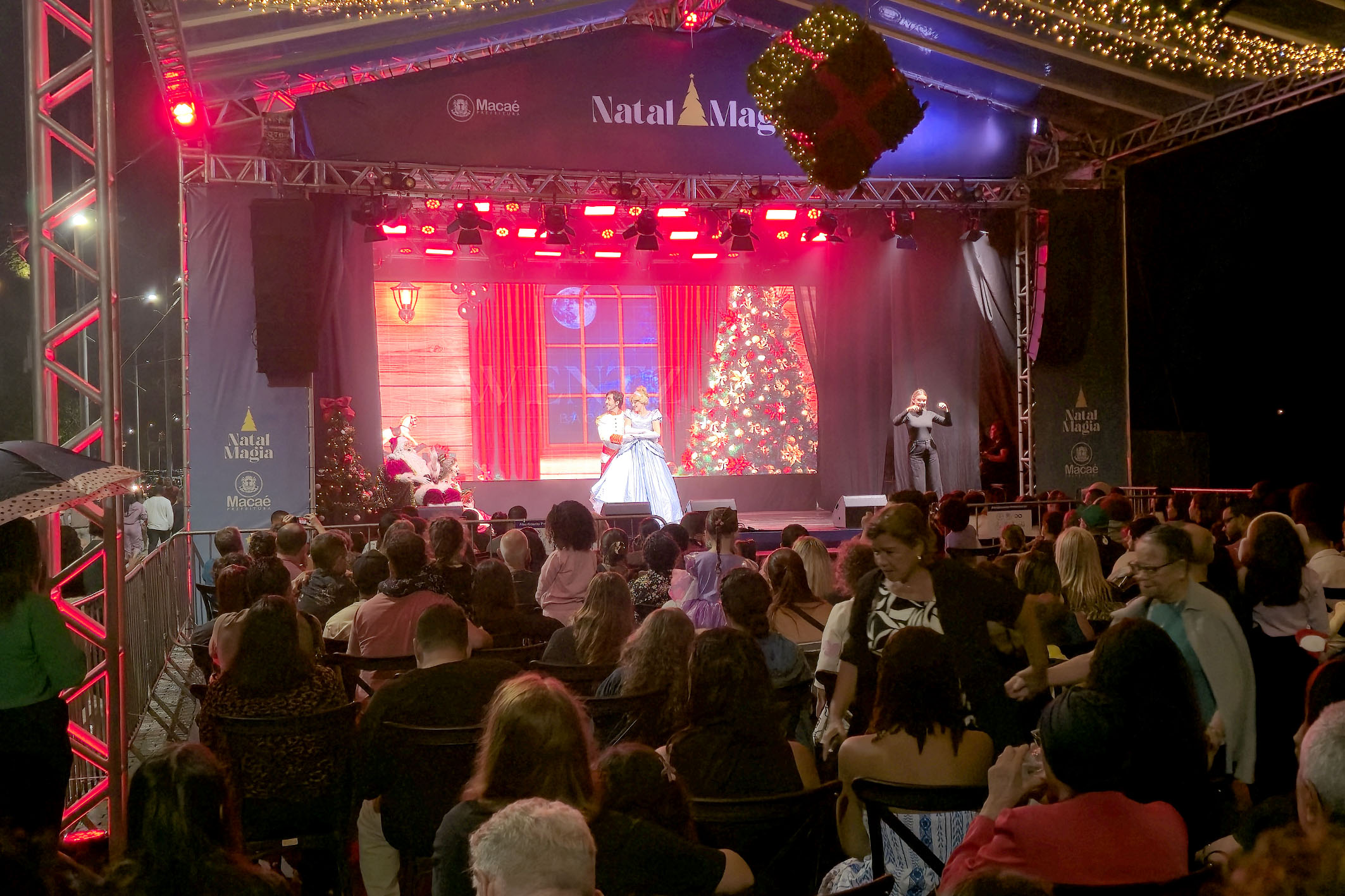 A noite desta sexta-feira (19), na Praia Campista foi marcada pela leveza e talentos das apresentações da programação do Natal Magia, promovido pela Prefeitura de Macaé. O espaço abrange área especial destinada a gestantes,idosos, pessoas com necessidade especiais e transtorno do espectro autista (TEA). A programação que alia cultura, emoção e fantasia, está transformando a cidade em um grande destino natalino com atrações gratuitas, promovendo o turismo, a interação familiar e reforçando os laços sociais com um evento acessível para todos.