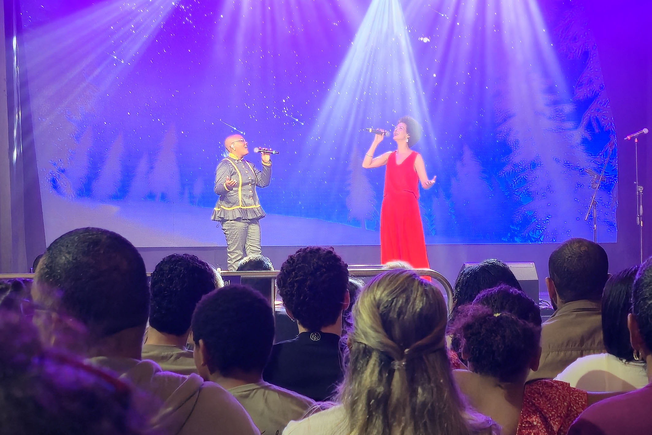 Outro momento especial foi o espetáculo “ Para iluminar o mundo”. A apresentação é reconhecida por ser uma celebração da vida, tradições e do poder transformador da arte. O palco contou com o brilho e voz marcante da cantora Kynnie e as convidadas Daniele Souza, Sarah Freitas e Verônica Gonçalves. O musical foi marcado por canções que destacam lembranças, sentimentos e a importância do espírito natalino , como a tradicional ‘Jingle Bells".