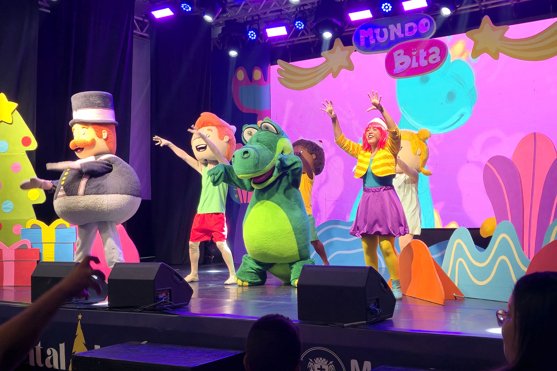Logo depois, o palco foi tomado pela energia contagiante do Show do Bita, que apresentou uma versão natalina do espetáculo “Festa dos Bichos”. Com os personagens Bita, Flora, Tina, Lila, Dan, Tito e a participação especial do Papai Noel, o público cantou junto sucessos já conhecidos, além das músicas temáticas “Papai Noel” e “Natal do Bita”.