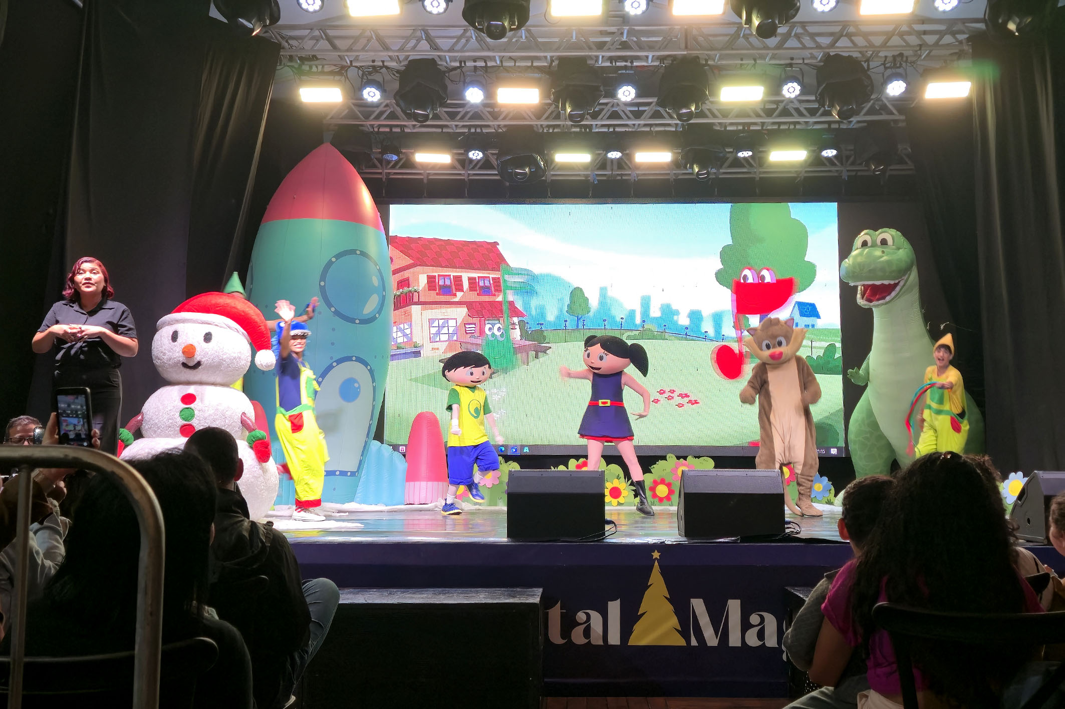 Em seguida, o clima ficou mais lúdico com “O Show da Luna, Ao Vivo! de Natal” foi outra atração da noite. Ao lado dos amigos Júpiter e Cláudio, Luna embarcou em perguntas divertidas e educativas que estimulam a imaginação das crianças, misturando ciência, fantasia e espírito natalino. Questões como a origem da neve, a morada do Papai Noel e até viagens espaciais fizeram parte da narrativa interativa do espetáculo.