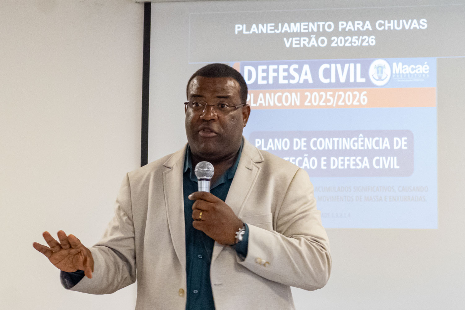 A abertura da apresentação do plano contou com a presença do vice-prefeito, Dr. Fabiano Paschoal, que elogiou o trabalho pró-ativo da Defesa Civil de Macaé.