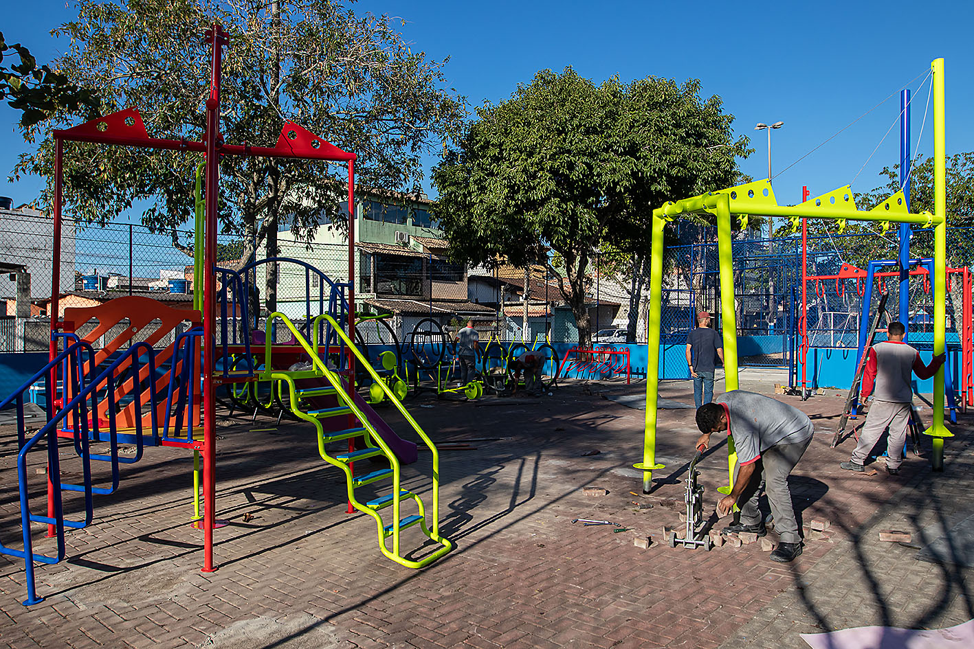 Também a Secretaria Adjunta de Serviços Públicos está atuando nestas praças para instalação ou conservação de parquinho conhecido como multiplay, com escorrega, escalador e balanço.