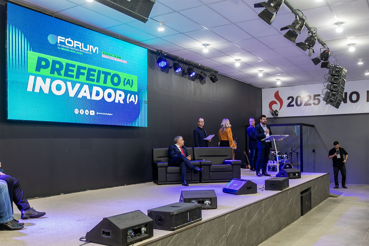 Com diversas políticas públicas voltadas para soluções inovadoras, o chefe do Executivo de Macaé, Welberth Rezende, recebeu nesta quinta-feira (15) a homenagem “Prefeito Inovador 2025”, da Rede Cidade Digital (RCD) em parceria com a Prefeitura Municipal de Casimiro de Abreu. A entrega aconteceu durante o Fórum de Cidades Digitais e Inteligentes da Região dos Lagos. O reconhecimento foi pelo desenvolvimento da ferramenta de integração ao e-Social, criada pela equipe da Secretaria Municipal de Gestão de Pessoas.
